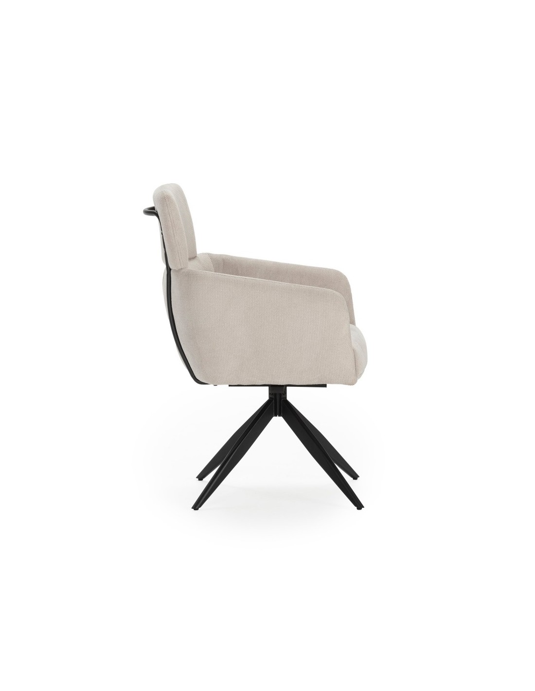 Tapizado en tejido de alta calidad, el sillón AIXA ofrece una experiencia de asiento suave y cómoda. Las patas de metal en negro no solo aportan un toque sofisticado, sino que también aseguran una estructura robusta y duradera. La funcionalidad giratoria del sillón AIXA proporciona mayor flexibilidad y comodidad, permitiendo un fácil movimiento y acceso desde cualquier ángulo.