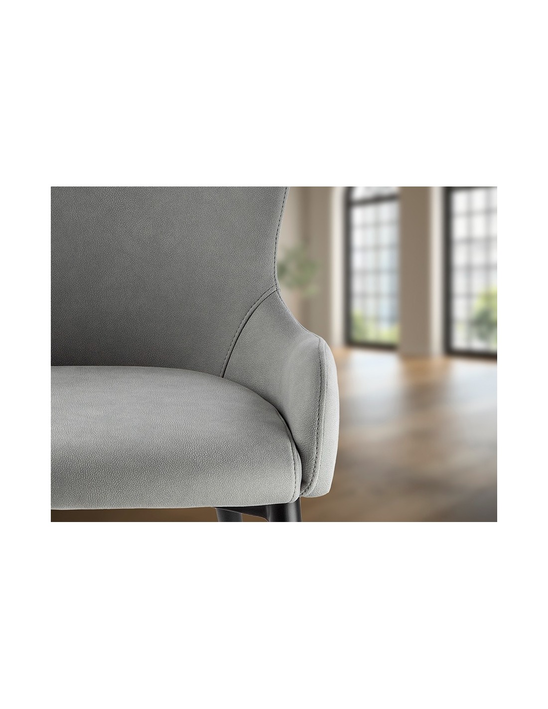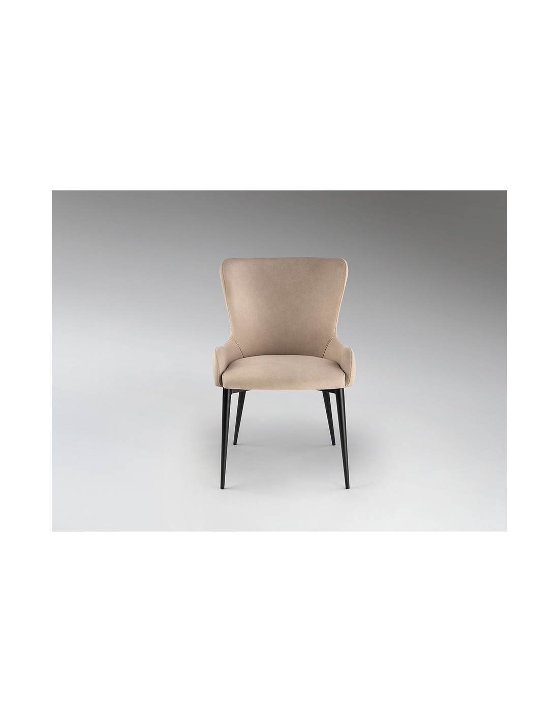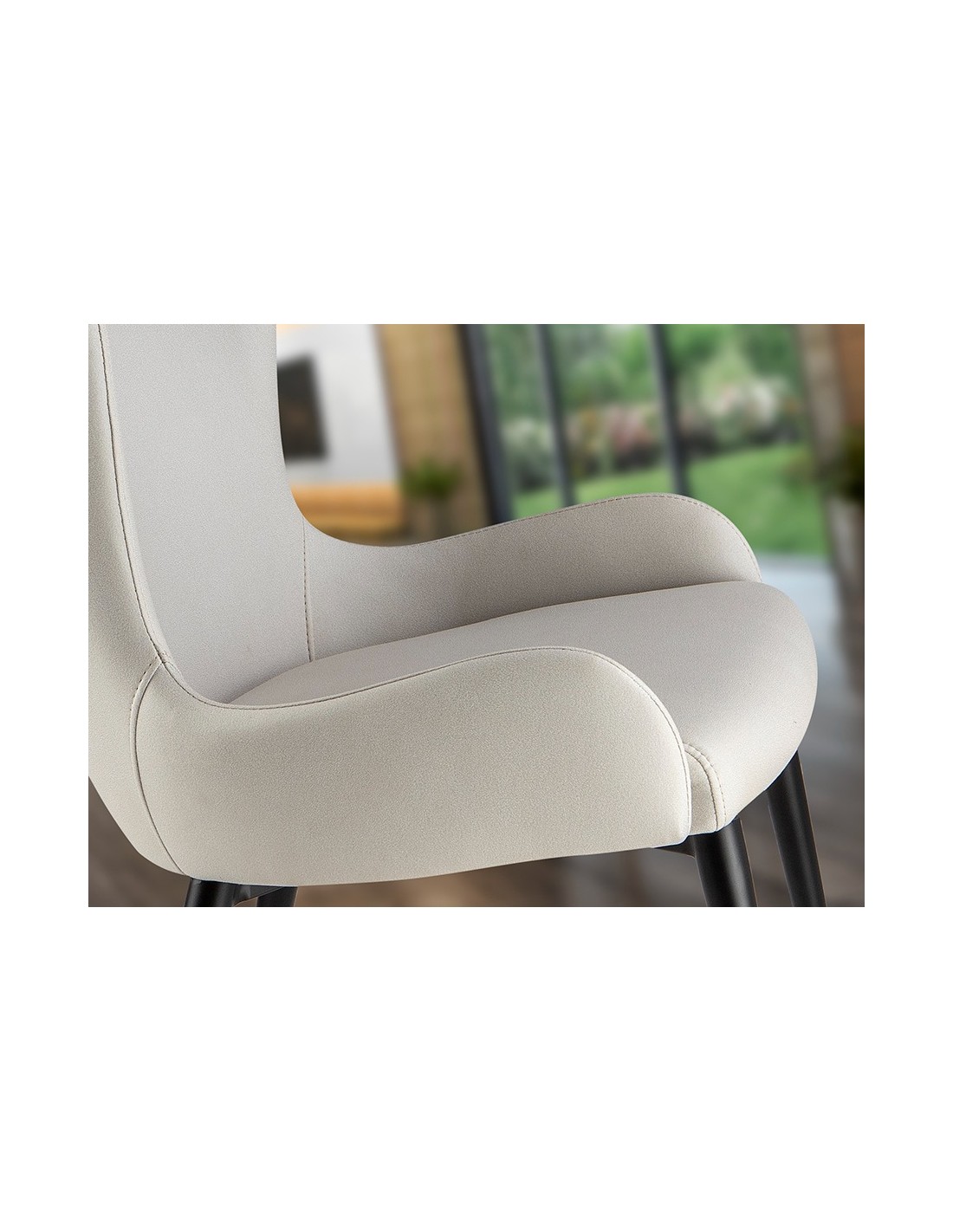El diseño de la silla TELMA se basa en líneas limpias y proporciones equilibradas, características del mobiliario moderno. Su estructura de metal en acabado negro mate aporta un aspecto elegante y sobrio que combina fácilmente con distintos estilos decorativos.