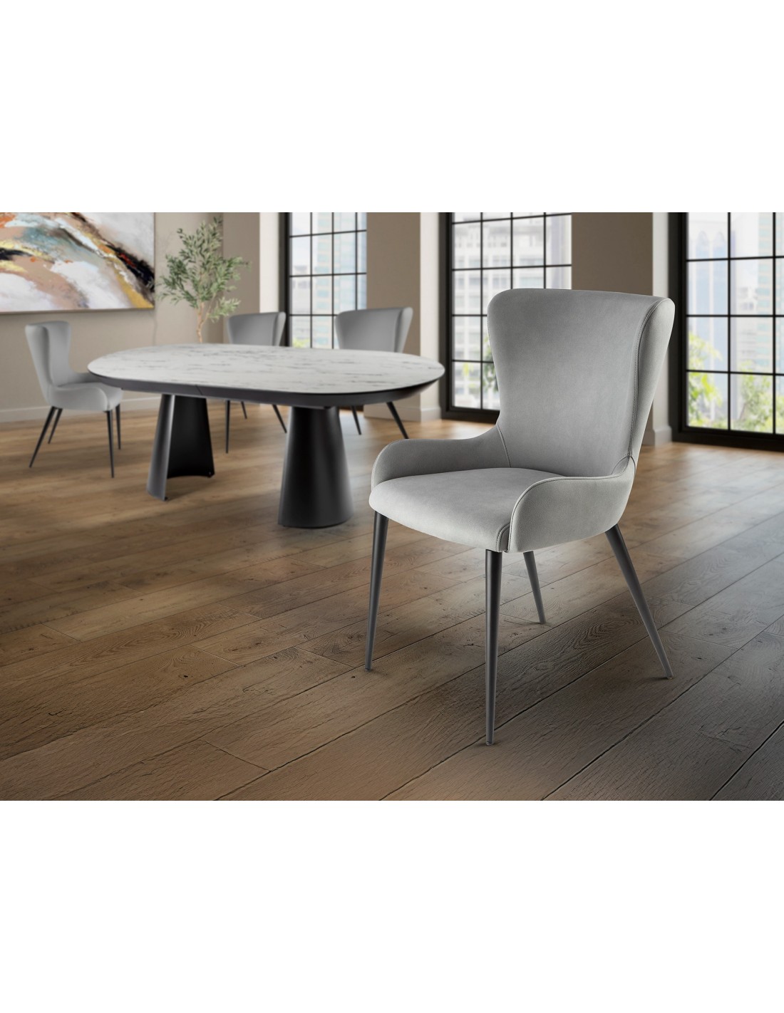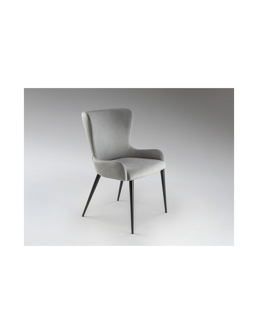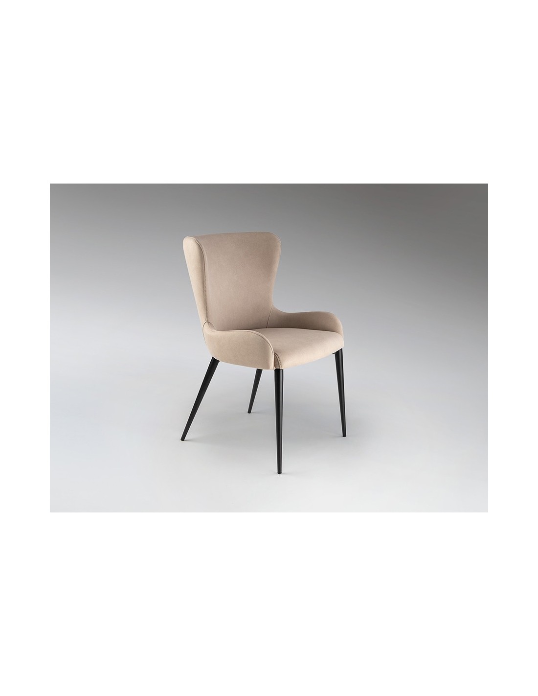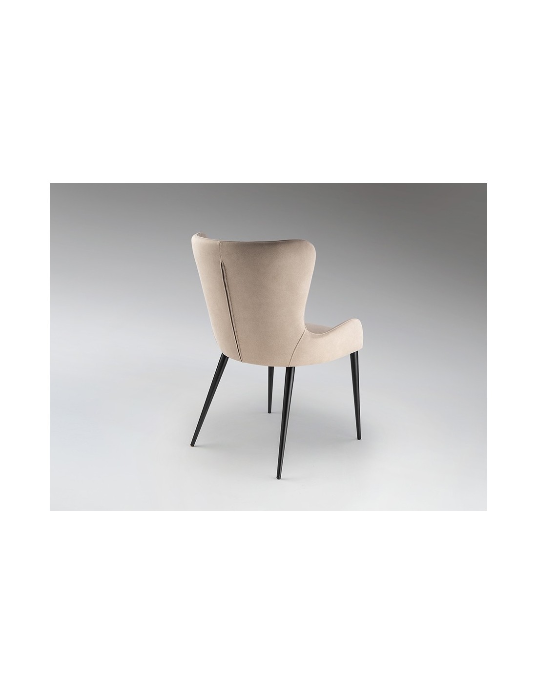 El diseño de la silla TELMA se basa en líneas limpias y proporciones equilibradas, características del mobiliario moderno. Su estructura de metal en acabado negro mate aporta un aspecto elegante y sobrio que combina fácilmente con distintos estilos decorativos.
