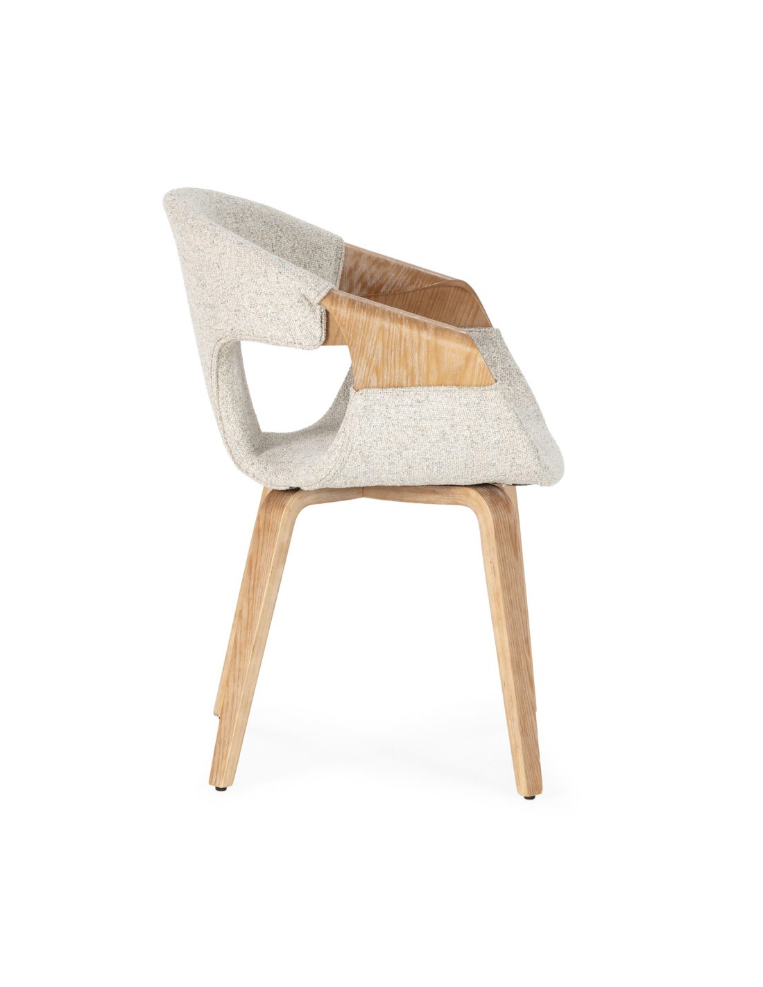 La Silla de diseño ELIF en Beige/Roble Lavado Tapizada con Patas de Madera es la elección perfecta si buscas confort, diseño natural y calidad en una sola pieza.
