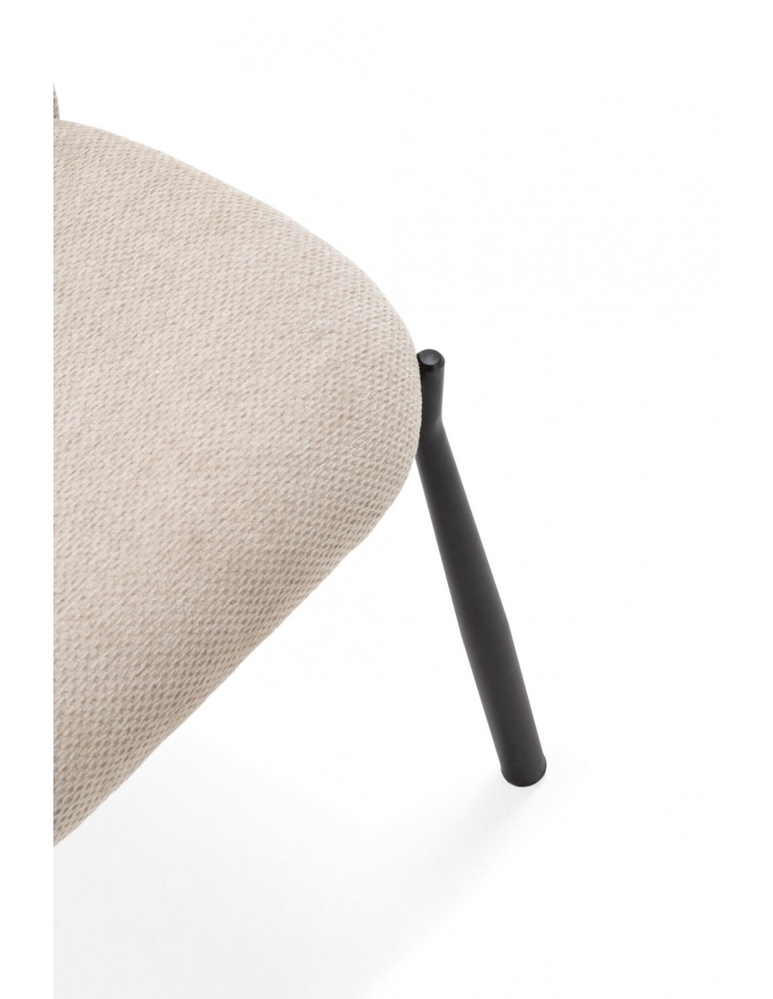 El tapizado en tela aporta calidez visual y una agradable sensación al tacto, mientras que las patas de metal en color negro refuerzan su carácter contemporáneo y aportan estabilidad. Esta combinación es una constante en el diseño moderno desde mediados del siglo XX, cuando el metal comenzó a integrarse en el mobiliario doméstico como símbolo de funcionalidad y modernidad.