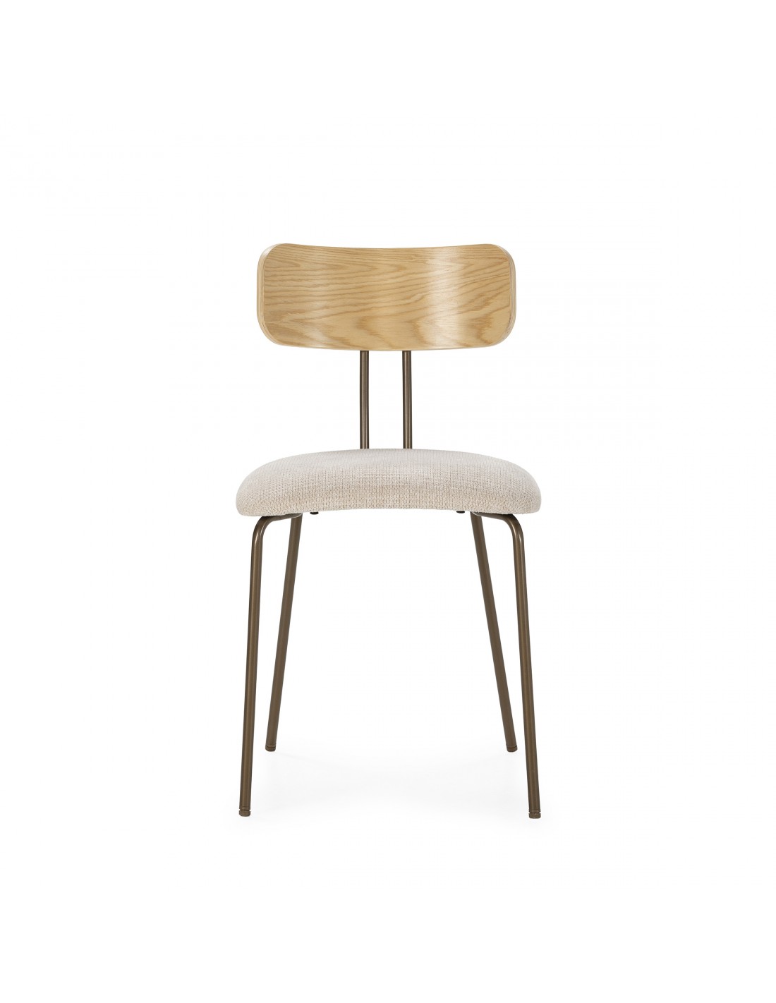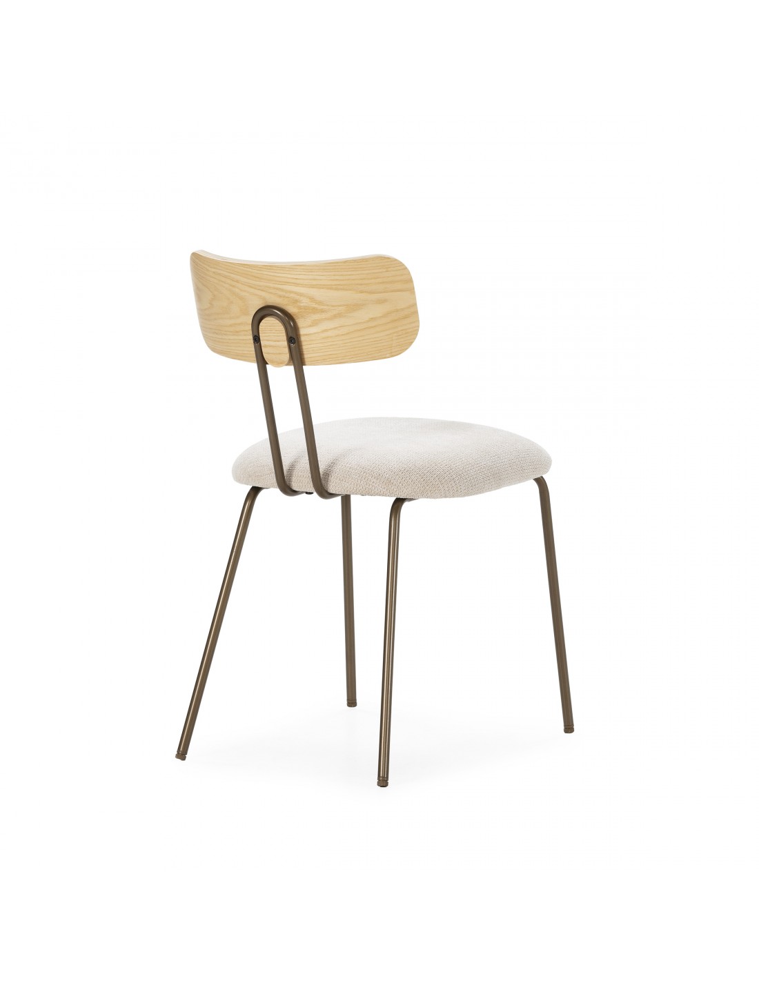 Silla minimalista OLIMPIA beige con respaldo en roble y patas de metal