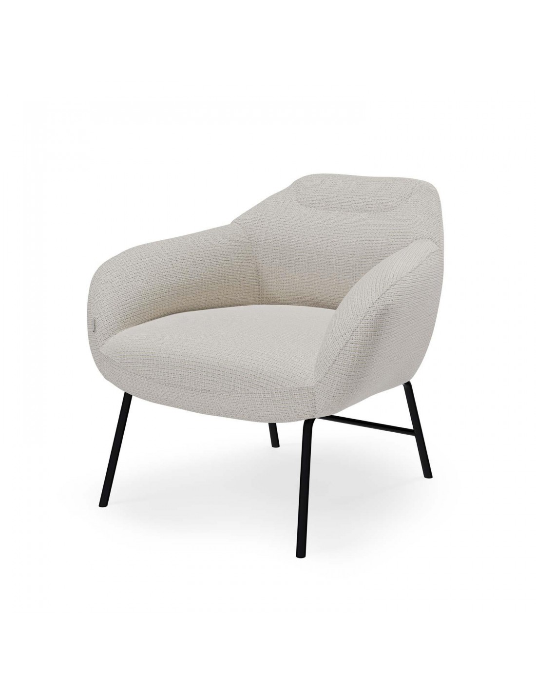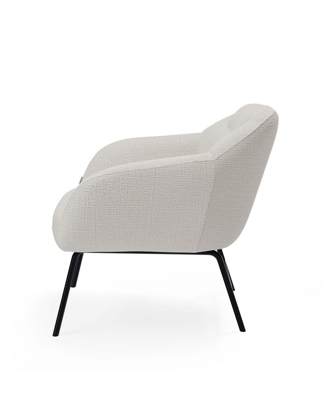 Butaca de diseño tapizada con tela Bora. Respaldo y brazo acolchados para que el asiento sea mucho más cómodo. El acabado en metal de las patas convierte en un diseño exclusivo y único a esta butaca.Ya sea en la sala de estar, la oficina o cualquier espacio de relajación, la butaca NAMUR se destaca como una pieza de mobiliario que fusiona a la perfección funcionalidad y estética moderna.