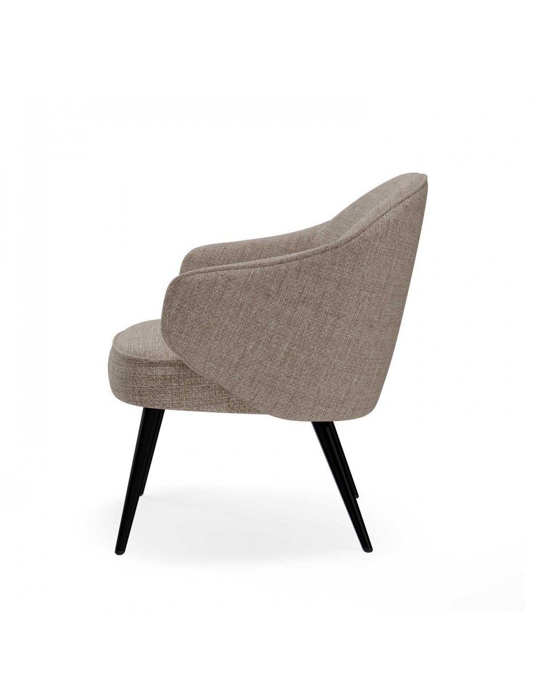 La butaca MACAO es una pieza de diseño que destaca por su elegancia curvilínea y su combinación de materiales que aportan tanto estilo como confort. Tapizada con tela Tango, esta butaca presenta un acabado natural que añade un toque de suavidad y sofisticación a cualquier espacio. El diseño curvilíneo de la butaca no solo ofrece una estética atractiva, sino que también garantiza una comodidad excepcional. Las patas de metal con acabado en negro proporcionan un contraste moderno y robusto, complementando el aspecto refinado de la pieza.