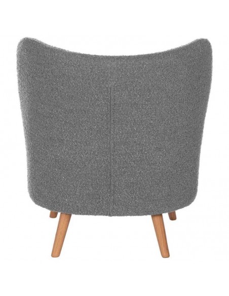 Butaca JAIPUR tela borreguito gris claro y patas de madera.