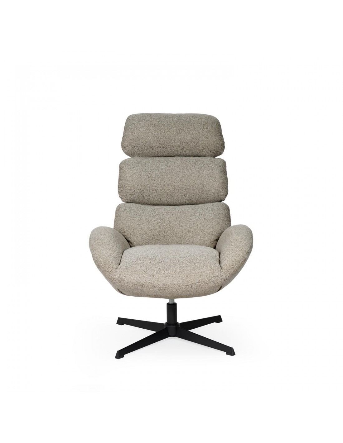 El sillón giratorio PAULINE no es solo un asiento: es un refugio visual y funcional pensado para el confort total. Su respaldo alto, dividido en tres secciones acolchadas, proporciona un soporte ergonómico excelente para espalda, cuello y cabeza. Los amplios apoyabrazos refuerzan la sensación de abrazo, mientras que su base metálica negra con giro de 360 ° añade dinamismo y libertad de movimiento al espacio.