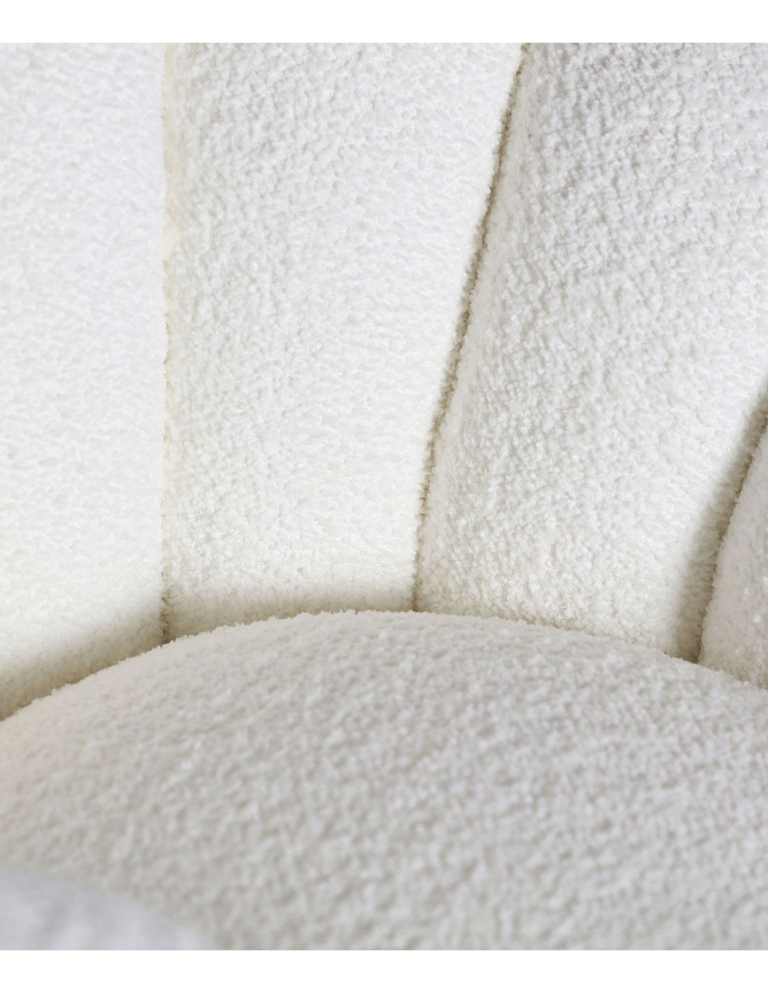El Sillón giratorio de diseño ergonómico BOUCLÉ CREST en algodón bouclé blanco es la elección ideal si buscas comodidad, exclusividad y un diseño art déco sofisticado. Una pieza que transformará tu hogar en un espacio de lujo accesible, con la garantía de Centrolandia.