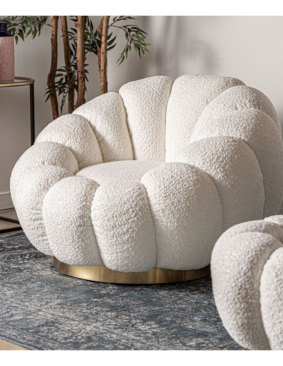 BOUCLÉ CREST | Algodón bouclé + acero dorado | Giratorio | Estilo art déco + ergonomía |