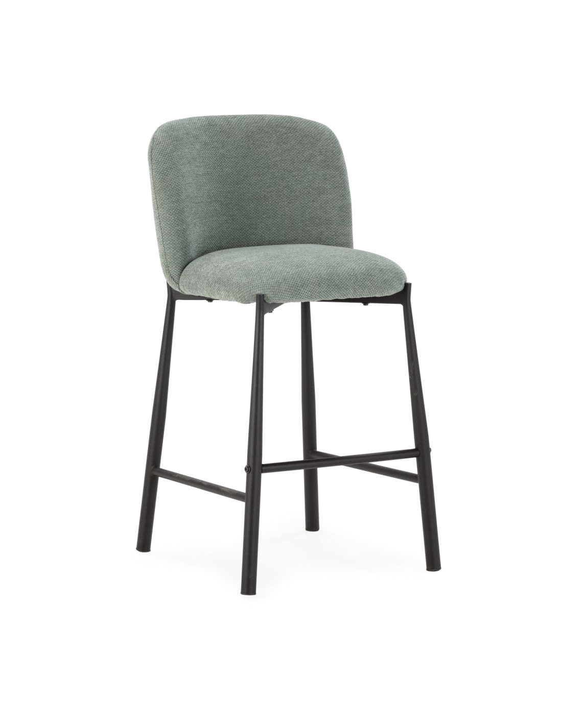 Taburete de diseño GINNY 65 en tela y metal negro, una pieza que fusiona la elegancia minimalista de la estructura metálica con la calidez del asiento en tela. Altura ideal para barras de cocina. Disponible en gris, verde, beige y coral. Compra en CentrolandiaShop con envío gratuito a España y Portugal y atención personalizada.