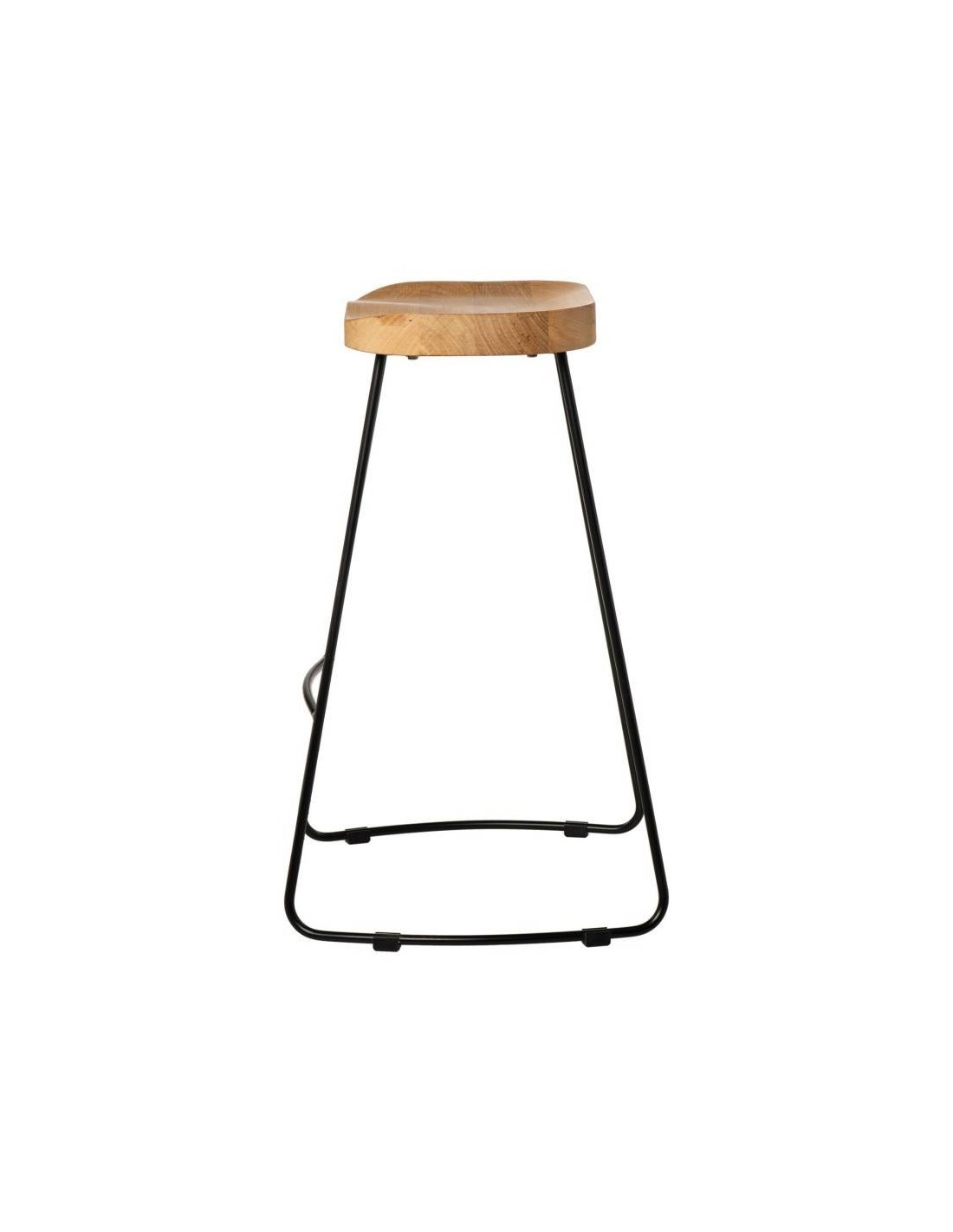 Taburete JOEL 66, metal negro y asiento de madera natural
