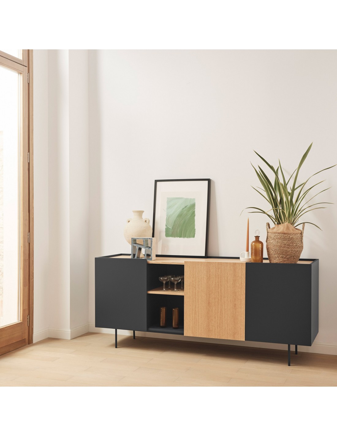 Teulat aparador OTTO 180 x 45. MDF gris antracita y roble, base de metal.