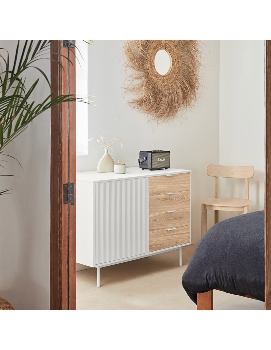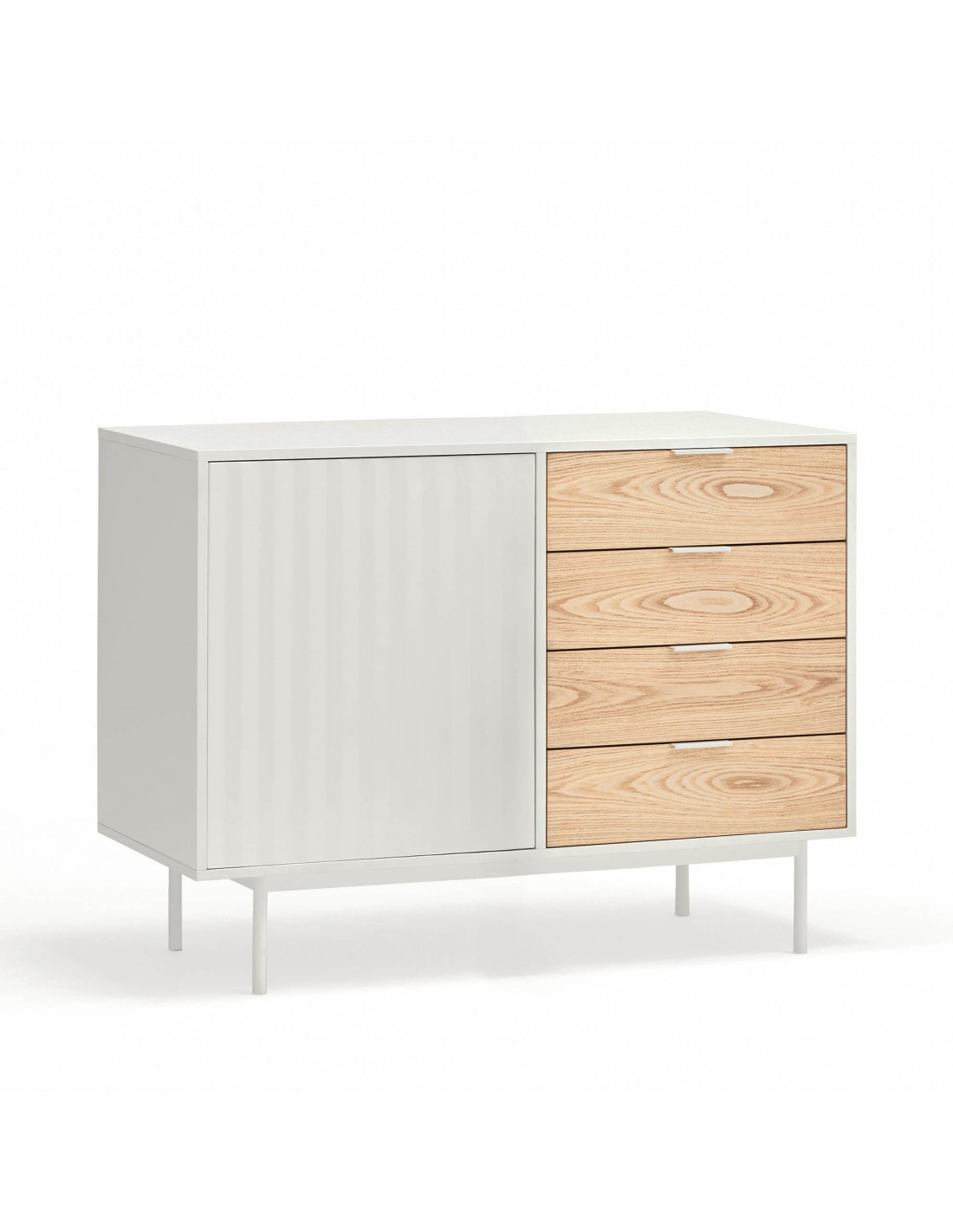 El acabado del aparador sierra está inspirado en las subidas y bajadas de un paisaje aserrado que juega con las luces, las sombras y la percepción en si.