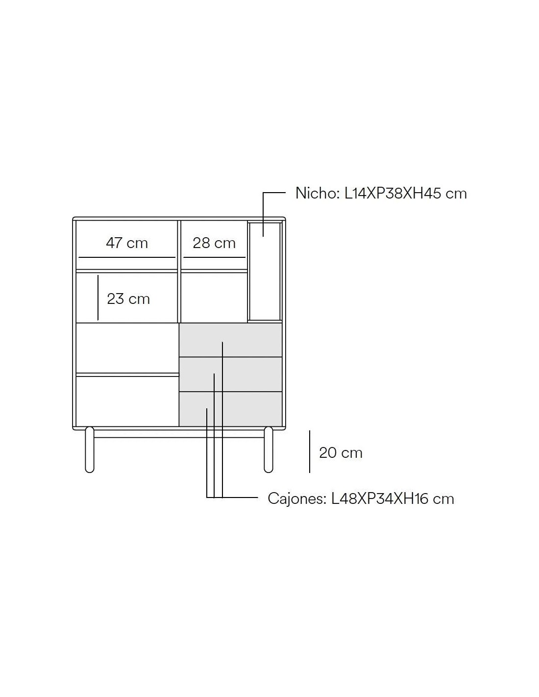 Alto 120 cm. Ancho 100 cm. Profundo 40 cm.