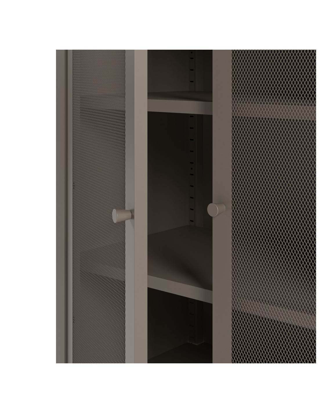 Imagina o FAYNA num hall moderno, servindo como ponto de organização com elegância; ou numa cozinha contemporânea, onde guarda louça mantendo tudo ventilado; ou ainda num escritório, onde transforma a arrumação de documentos numa experiência estética. O seu estilo metálico com grelha remete aos arquivos industriais vintage, atualizados para a decoração atual.