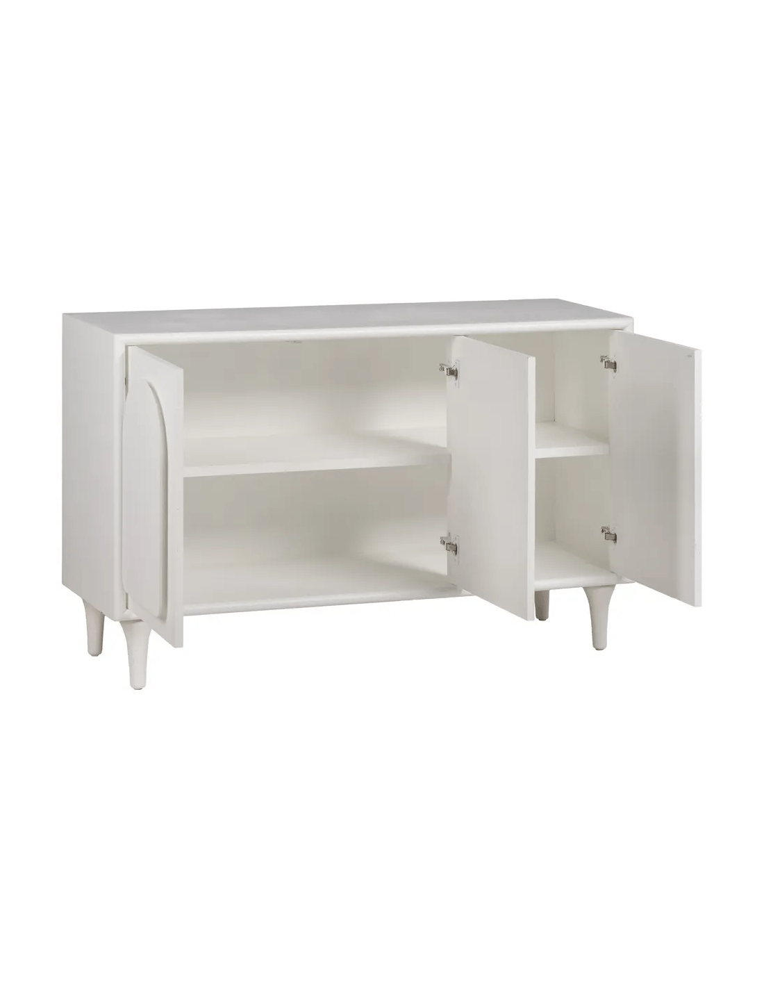 Este aparador branco puro não só proporciona uma sensação de modernidade e amplitude, mas também destaca a excelência em seu acabamento. Possui três portas, proporcionando amplo espaço de armazenamento para manter seus pertences organizados e fora da vista. A sua composição em DM garante longa durabilidade e resistência, tornando este aparador um investimento seguro e elegante para qualquer casa.