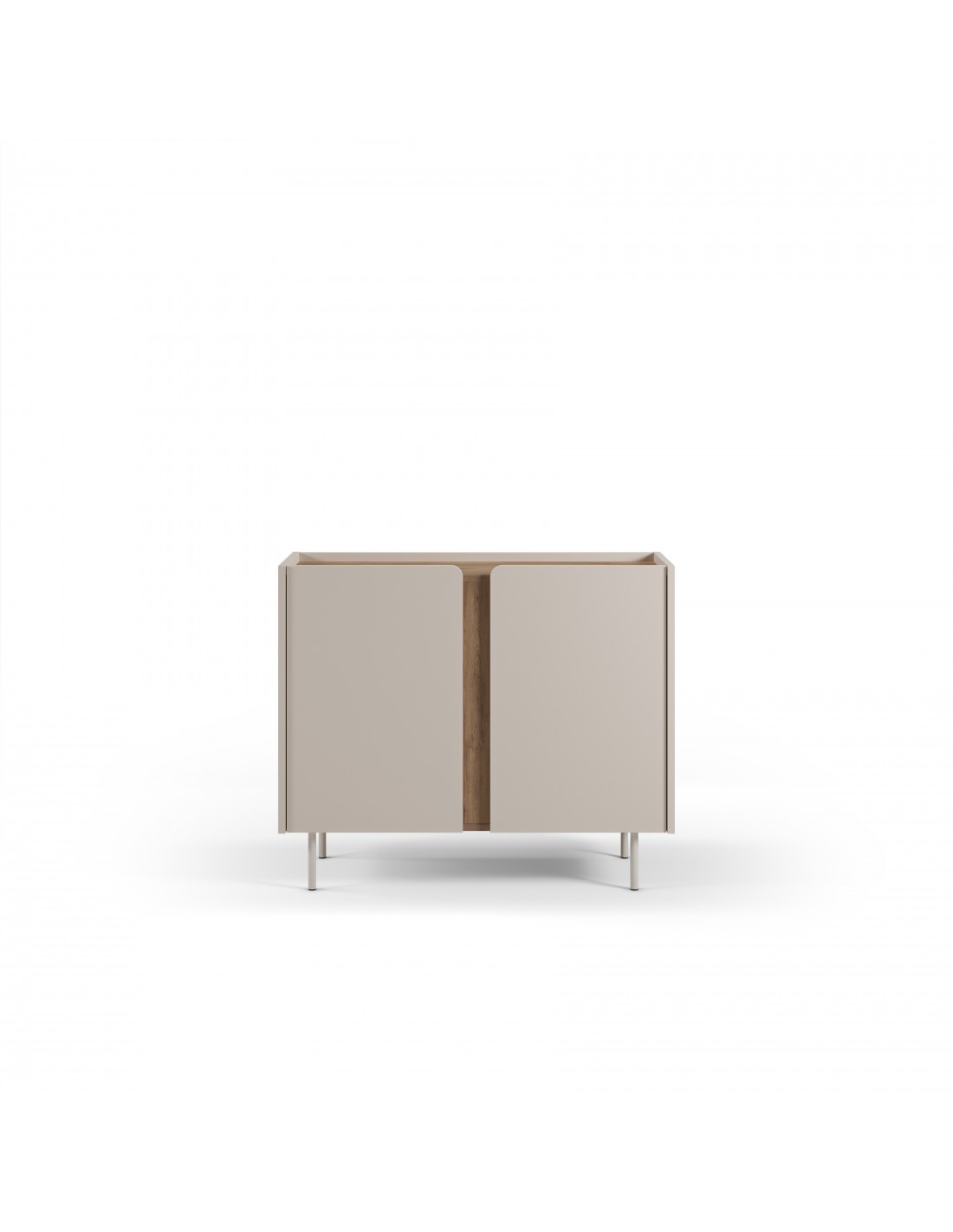 O aparador de design LUCILE, uma peça sofisticada de 100 cm que combina o calor da melamina creme com o sepet contrastante, criando um efeito elegante e contemporâneo. Com 2 portas, este móvel oferece um amplo espaço de arrumação, ideal para organizar loiças, têxteis ou qualquer objeto decorativo.