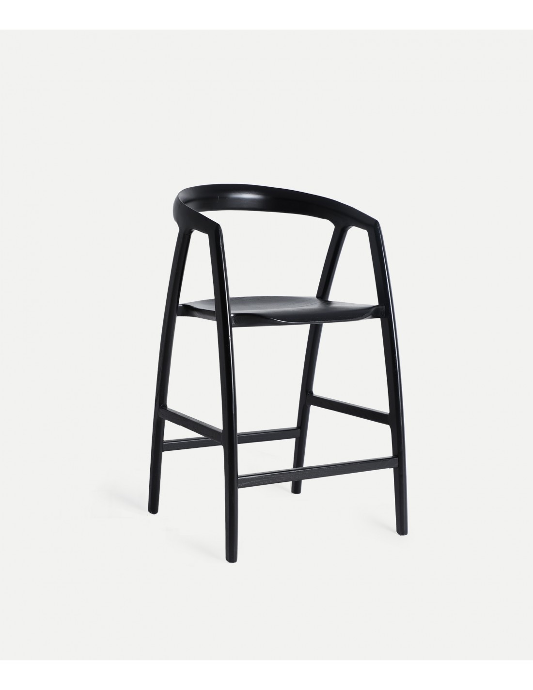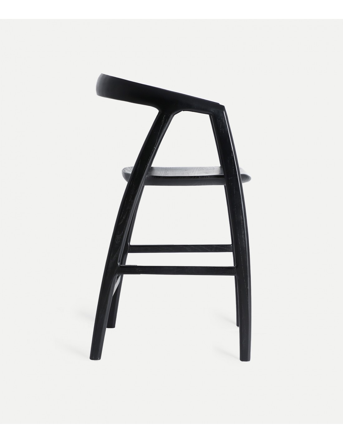 Fabricado em madeira de olmo com acabamento preto, este banco alto reflete tradição artesanal e modernidade. O olmo é reconhecido pela sua resistência e estabilidade estrutural, tornando-o adequado tanto para uso doméstico como profissional.