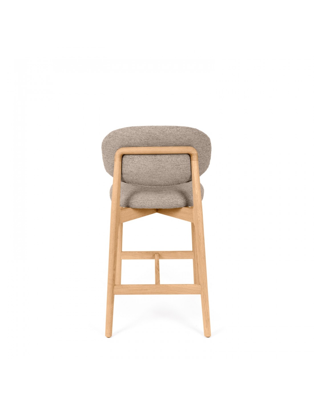 Se procura uma peça que una conforto, beleza e resistência, o banco baixo WANDA 65 cm é a escolha ideal. O seu encosto curvo com estrutura de madeira visível oferece um detalhe decorativo marcante, tornando-o visualmente atrativo de todos os ângulos. É perfeito para ilhas de cozinha, balcões ou espaços de restauração, combinando presença estética com altura funcional para uso diário.