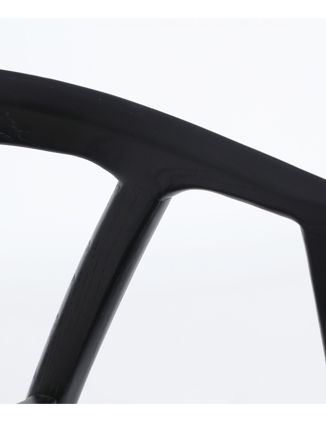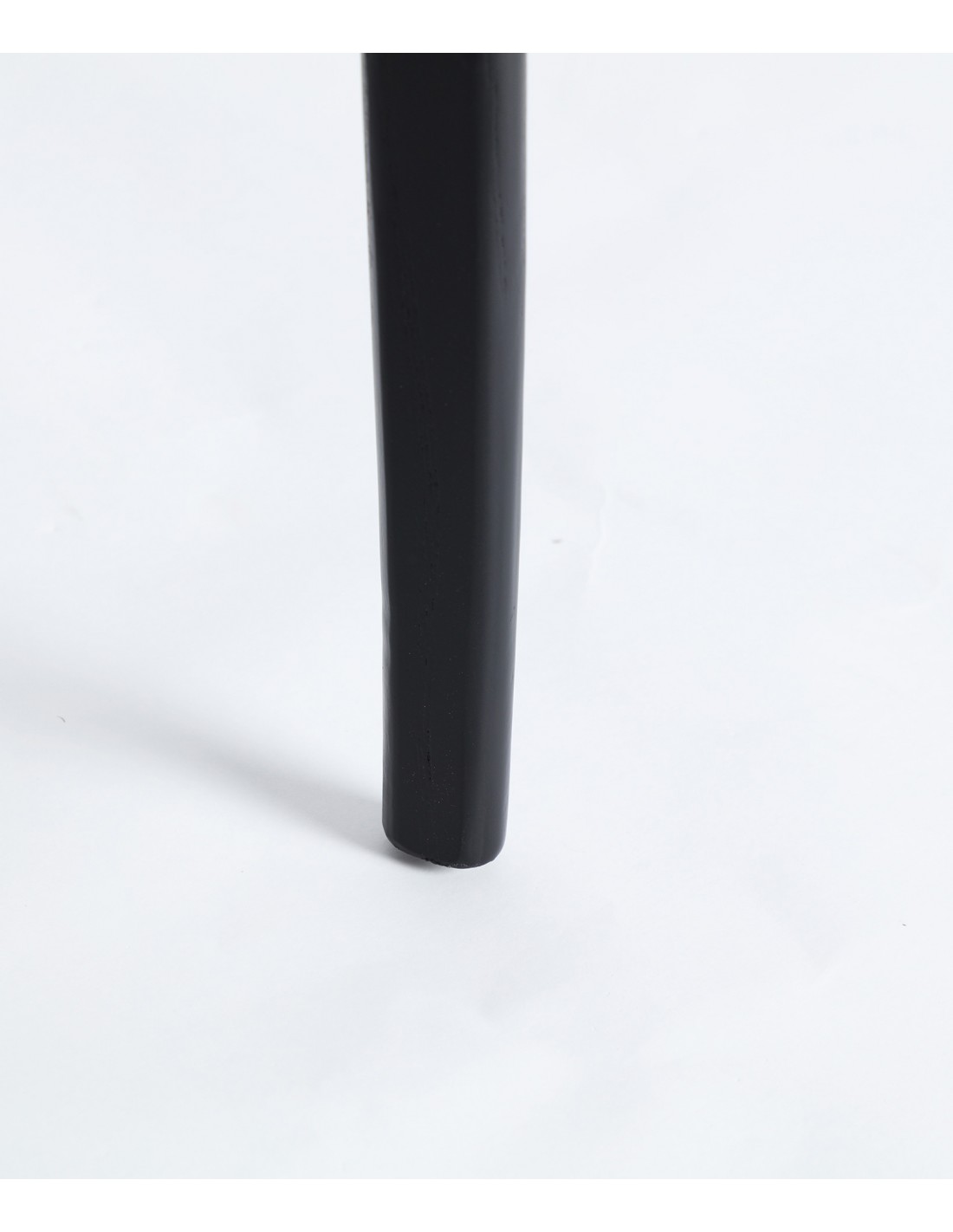 A madeira de olmo é reconhecida pela sua resistência e estabilidade estrutural. Tradicionalmente utilizada em mobiliário europeu de qualidade, garante longevidade e robustez. O acabamento preto reforça o seu perfil moderno, permitindo combinações com mesas em madeira natural, mármore ou metal.
