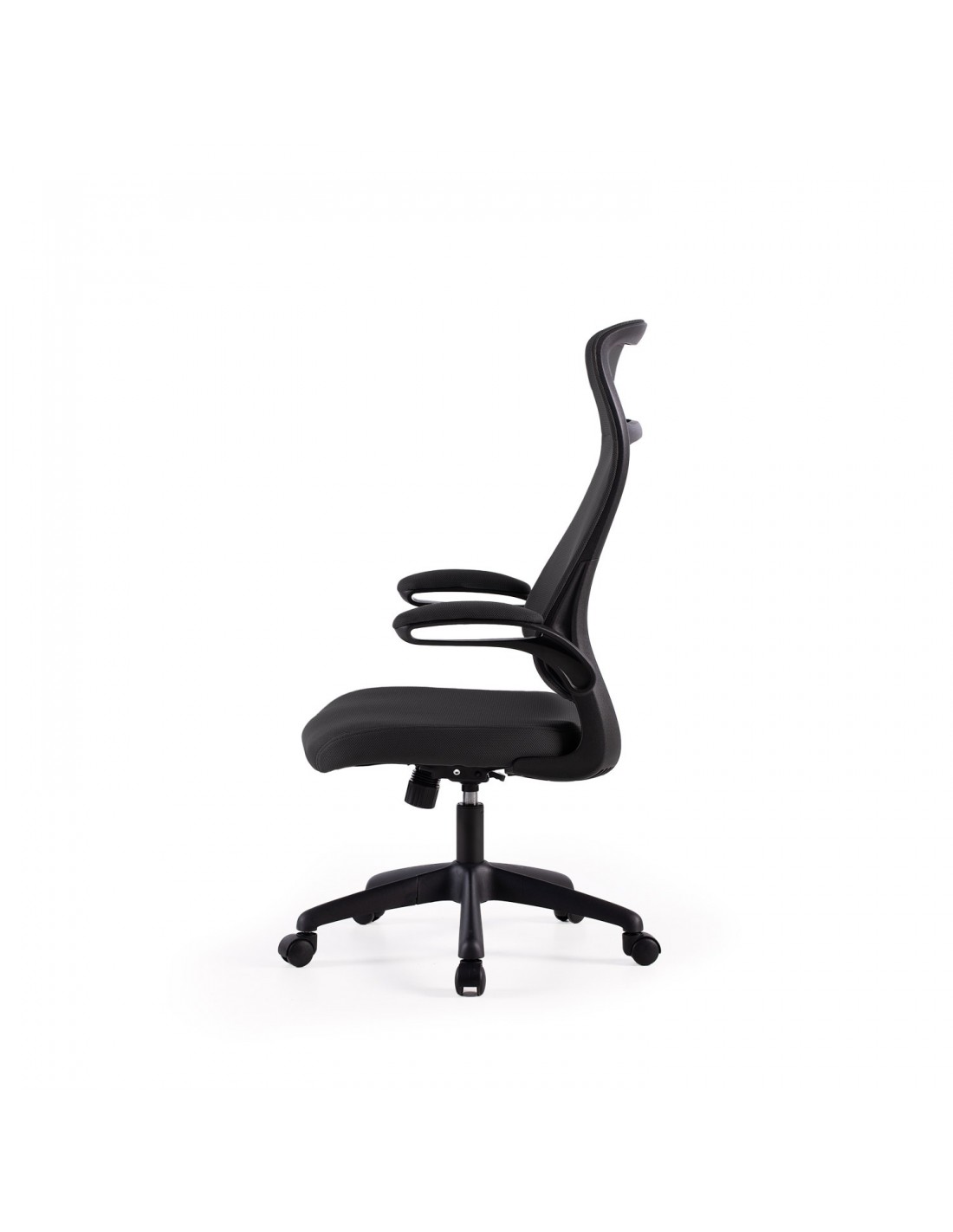 A SORBONNE alta foi pensada para quem precisa trabalhar muitas horas sentado, mantendo uma postura saudável: encosto alto que protege a zona cervical, regulação de tensão com perilla e alavanca de bloqueio, além de braços rebatíveis que permitem aproximar-se da secretária ou guardar a cadeira debaixo dela sem perder conforto.