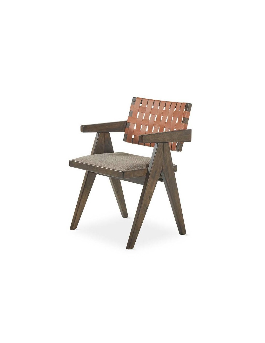 Cadeira MELKY com braços, madeira natural acabamento em nogueira.