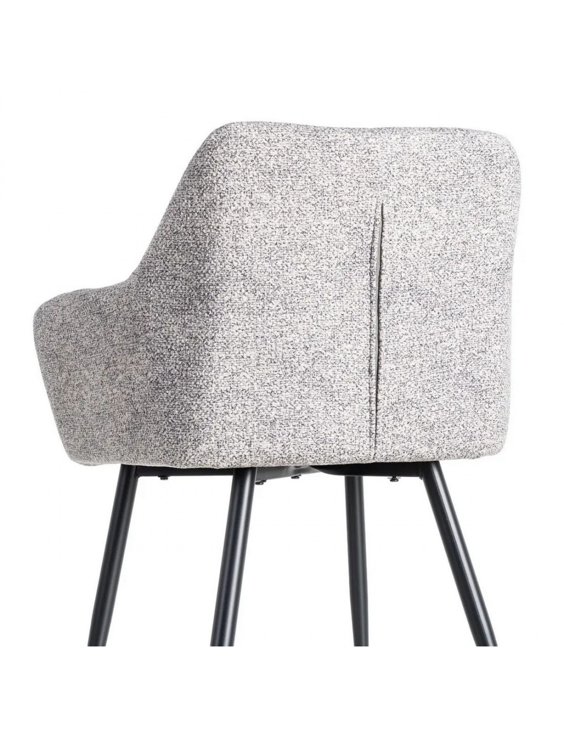 A Cadeira ARDEN com braços é ideal para quem procura uma fusão entre estilo e funcionalidade. O tecido jaspeado oferece uma textura acolhedora, enquanto as pernas metálicas pretas adicionam um toque moderno. O encosto médio e os braços acolchoados tornam esta cadeira uma opção confortável e estável para o uso diário.