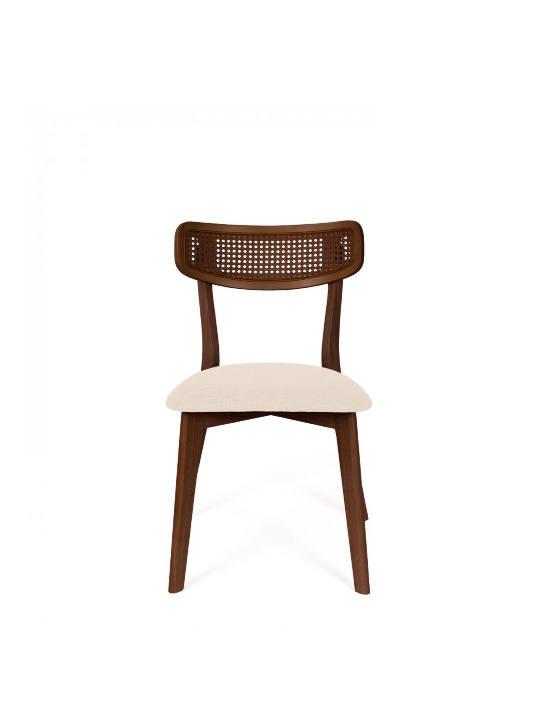 Inspirada nas linhas do design escandinavo e mid-century, a cadeira SHIRLEY é perfeita para quem busca funcionalidade, aconchego e estilo. Seu encosto em palhinha sintética bege traz leveza visual e conforto térmico, enquanto a base em madeira en noz oferece robustez e presença estética.