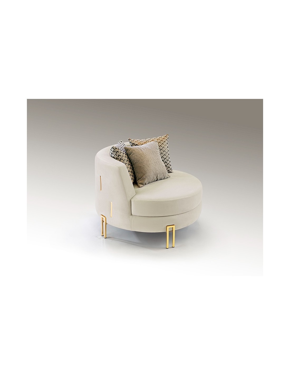 A tonalidade clara do estofado combinada com os detalhes dourados permite ao cadeirão VIENA iluminar o espaço sem o sobrecarregar, tornando-o ideal como peça principal ou como complemento decorativo.