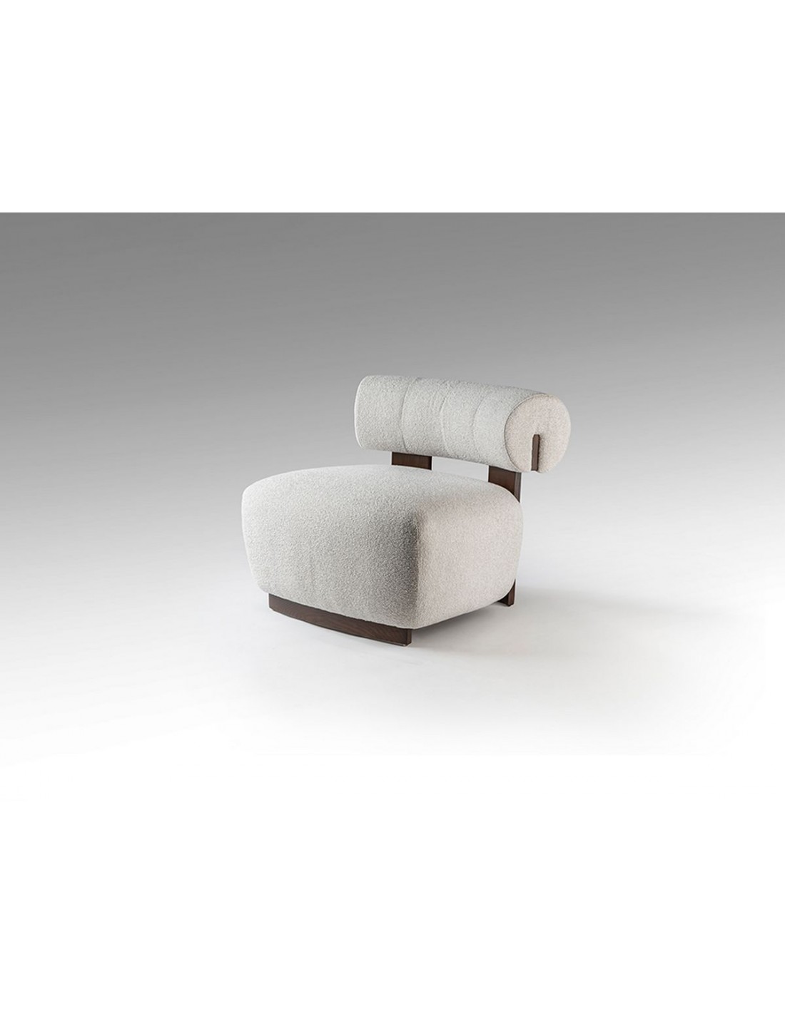 A combinação de madeira e chenille responde à necessidade de criar um cadeirão resistente, estável e simples de cuidar, adequado tanto para uso doméstico como para projetos profissionais.