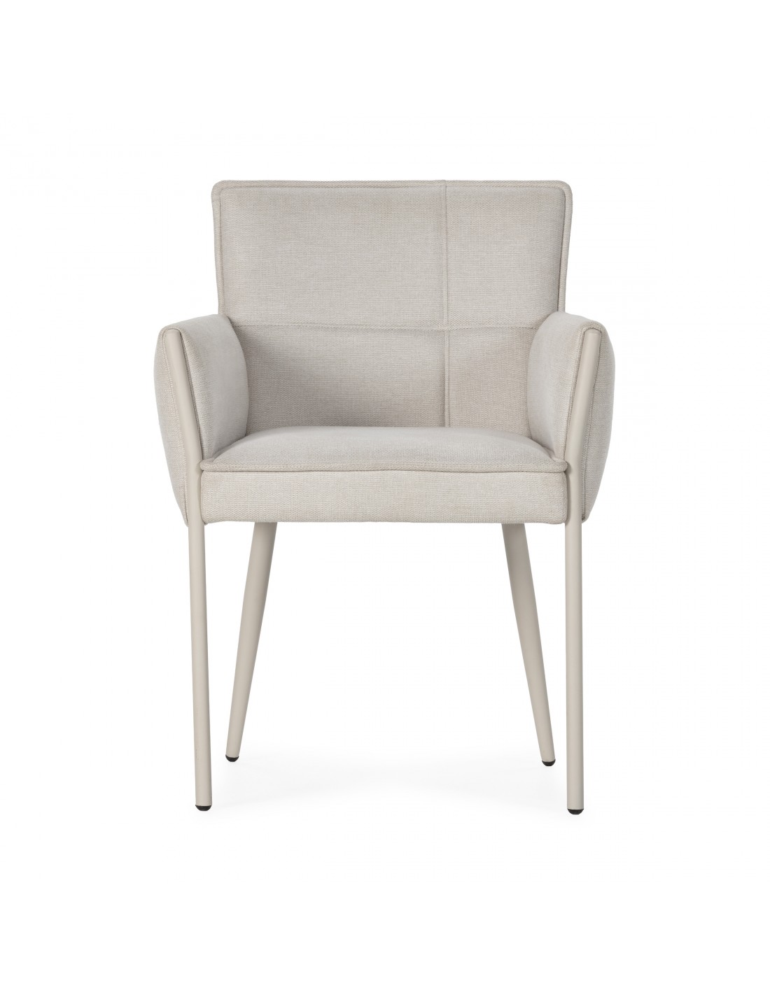 A Poltrona de design VESTA estofada em tecido creme, cinza escuro ou verde com pés em metal combina estética contemporânea, conforto ergonómico e resistência estrutural. O seu encosto amplo e braços integrados proporcionam uma experiência envolvente e confortável, ideal para longas refeições, reuniões familiares ou espaços de trabalho sofisticados.