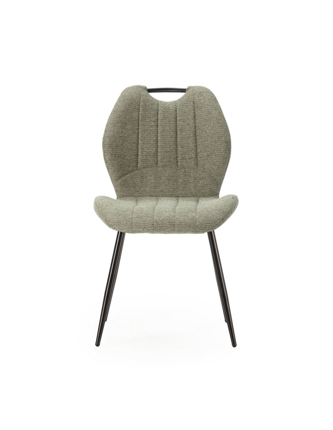 Cadeira design MULI, encosto acolchoado em tecido verde e metal preto