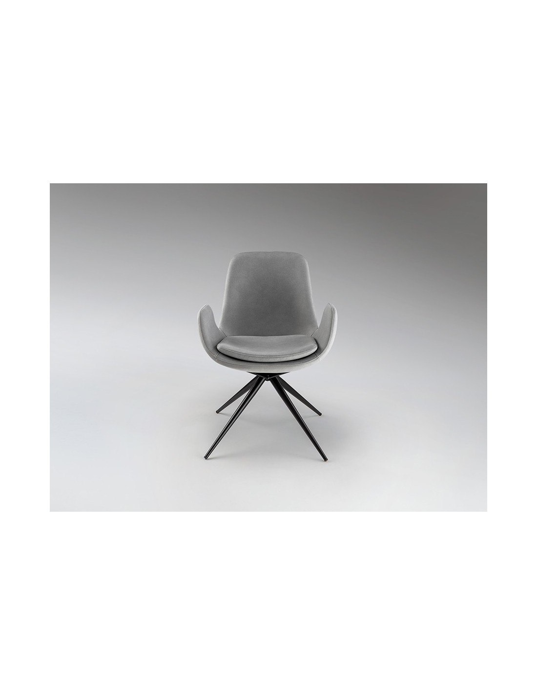 Poltrona giratória ZUNA em metal preto e estofamento em tecido com retorno automático