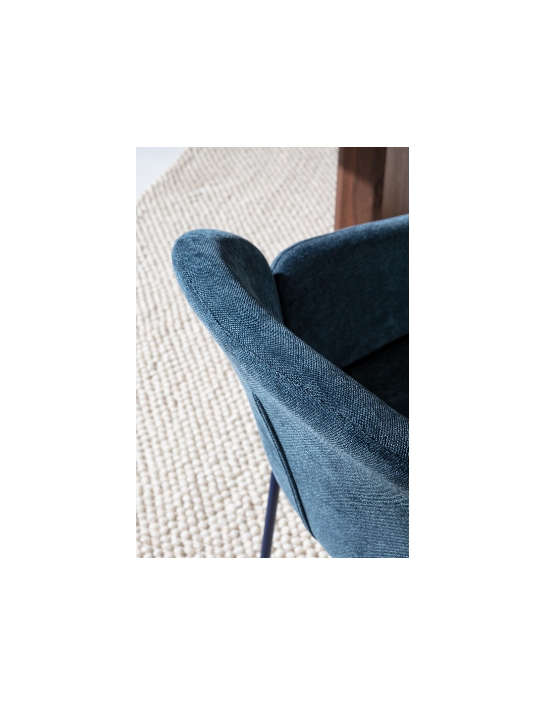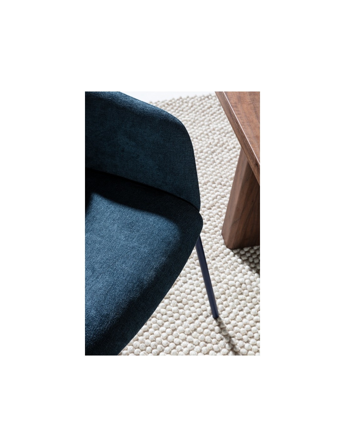 As linhas simples e proporções equilibradas da ASLiN seguem a filosofia do design nórdico, onde funcionalidade e minimalismo caminham lado a lado. A combinação entre tecido suave e pés de metal preto cria uma peça versátil que se integra facilmente em salas modernas, cozinhas abertas ou espaços de trabalho.
