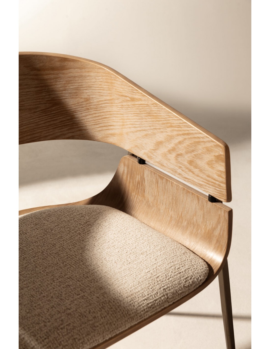 As pernas metálicas não só reforçam o carácter contemporâneo da cadeira, como asseguram estabilidade estrutural e resistência ao desgaste.
