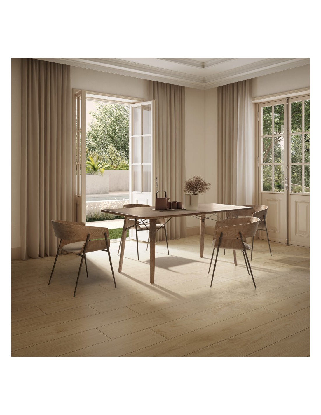 Complementa mesas em madeira, vidro ou cerâmica, criando um ambiente moderno e acolhedor.