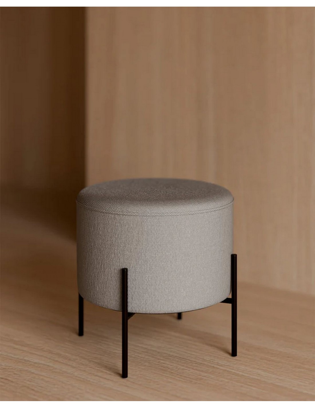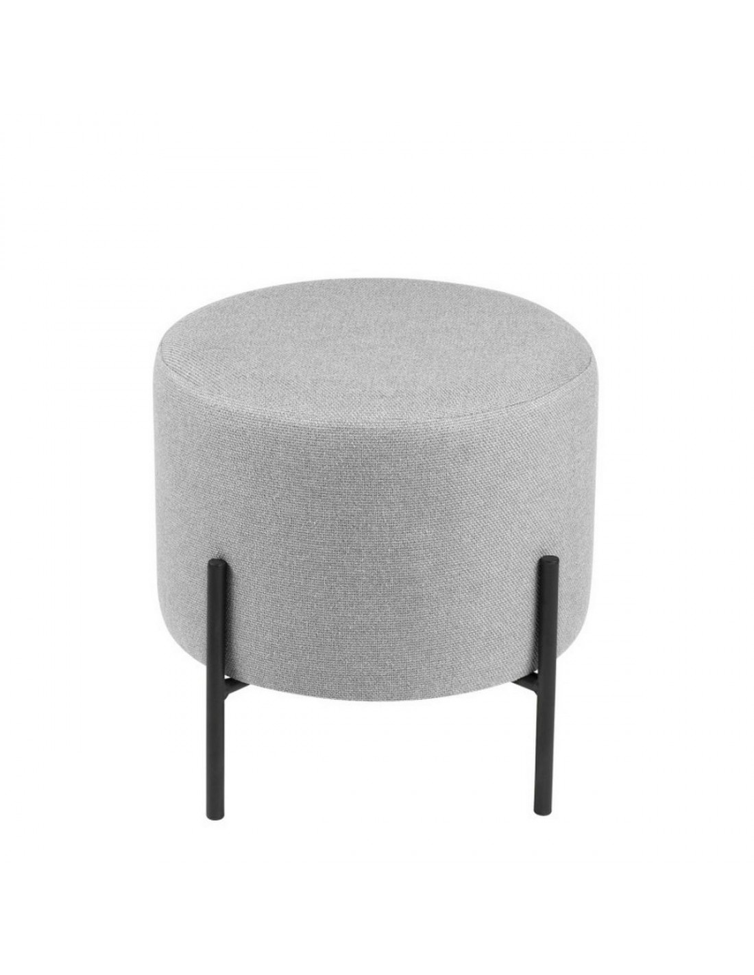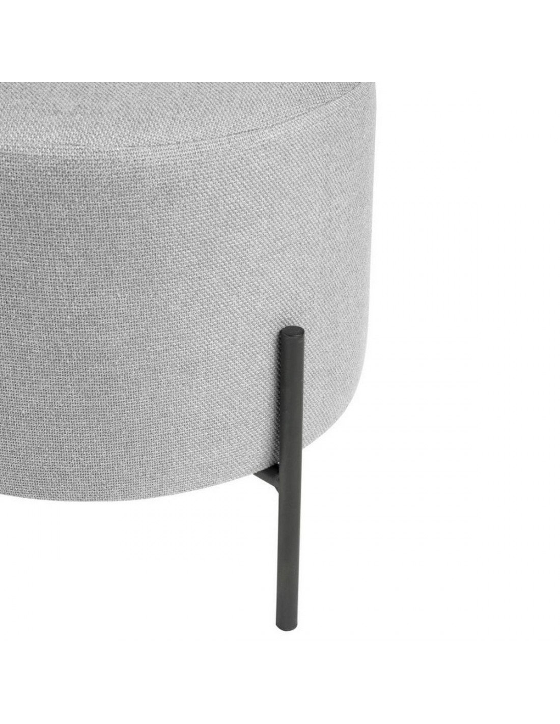 Puff redondo HERMAN 40, tecido cinza e metal preto