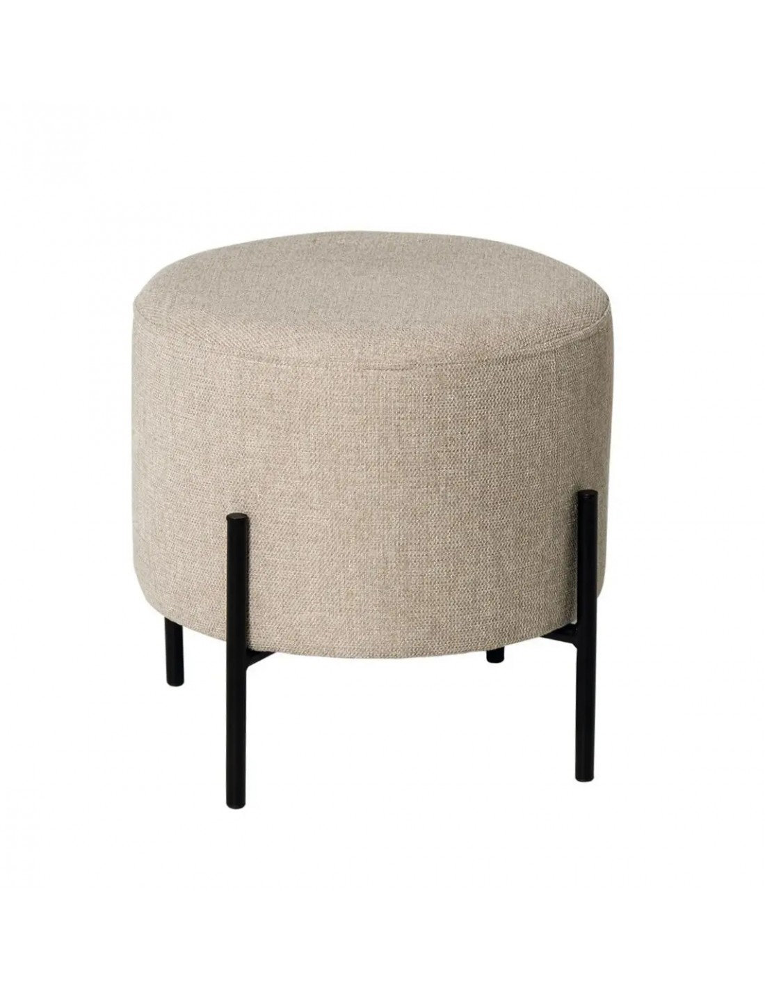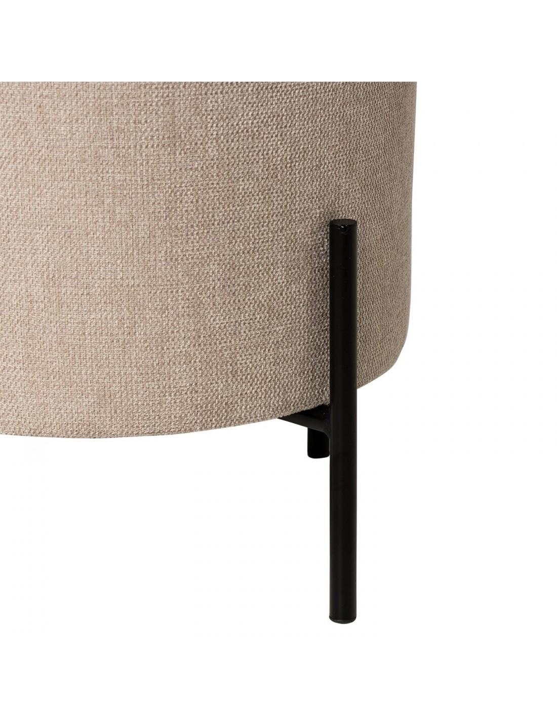 Puff redondo HERMAN 40, tecido beig e metal preto