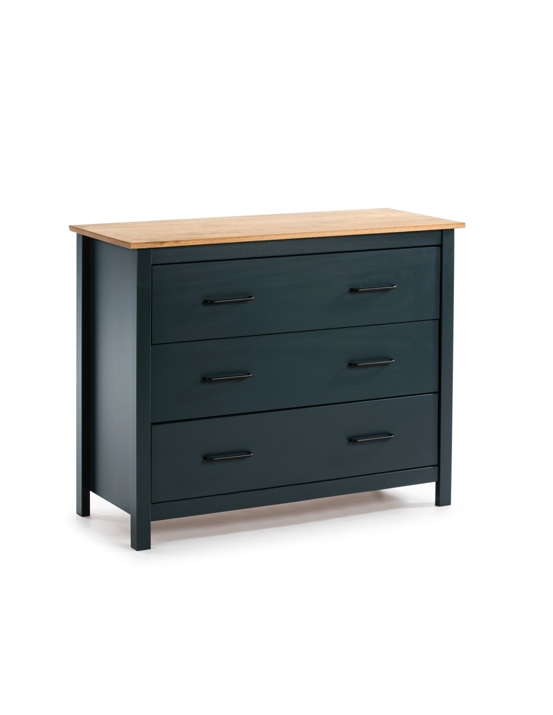 Cómoda Mediterrânica MIRANDA 100 x 80, 3 gavetas, pinho encerado e azul