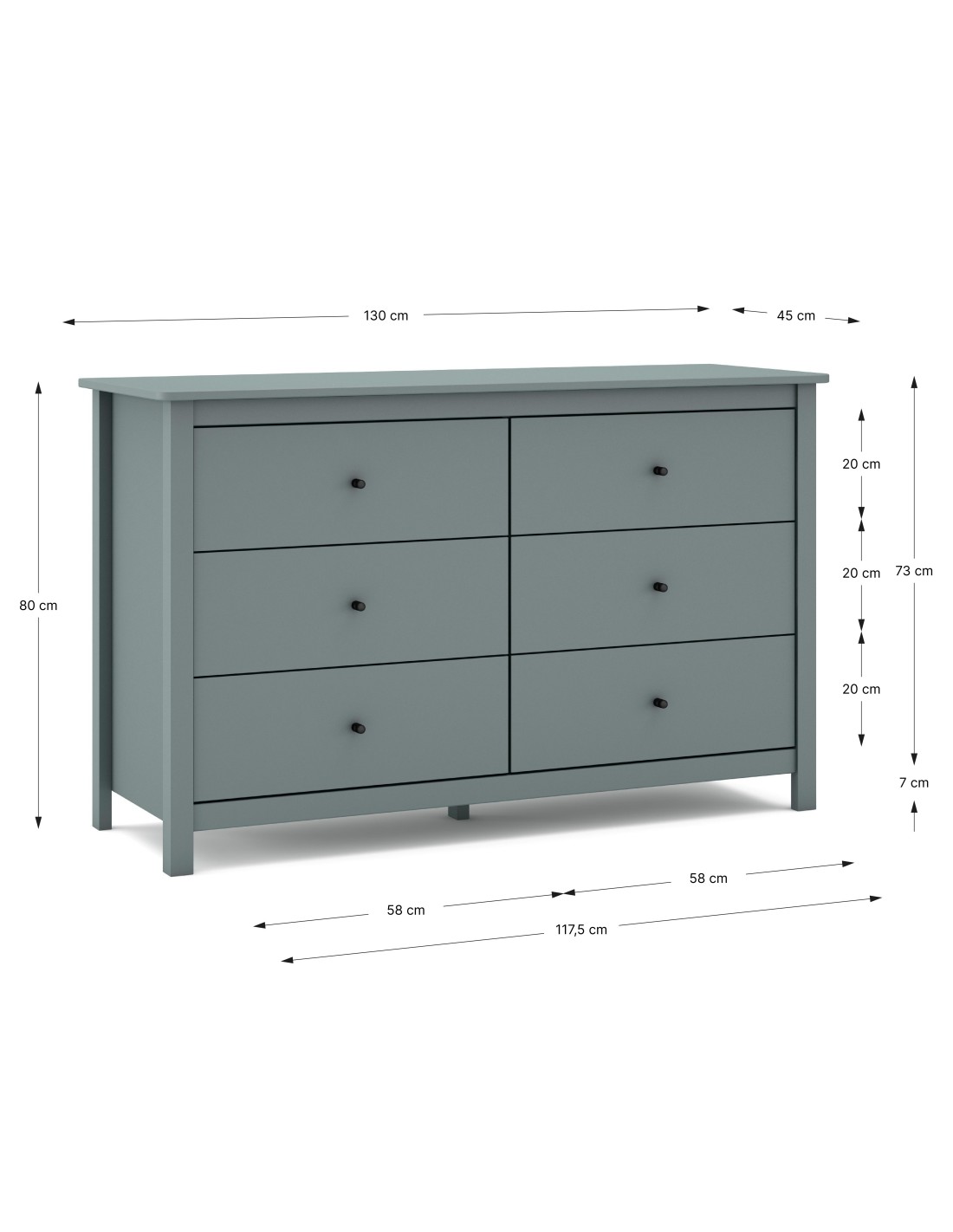 Cômoda mediterrânea MISTI 130 x 80, 6 gavetas, pinho verde