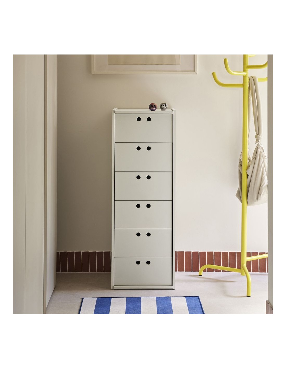 A ausência de adornos excessivos, a modularidade e a seleção de materiais permitem que esta cómoda combine estética contemporânea com funcionalidade prática.