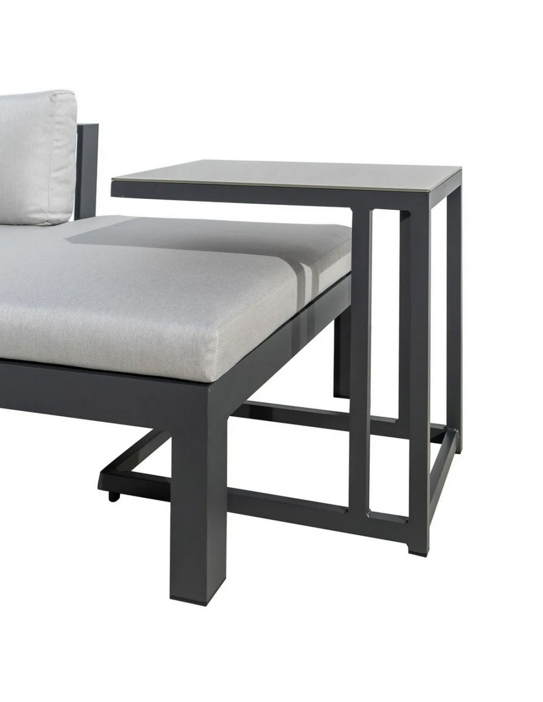 A Rinconera de Jardim AGNES Alumínio Grafite 224x224 cm com Mesa foi concebida para quem procura um espaço elegante de descanso ao ar livre. Inspirada nas tendências atuais do mobiliário outdoor, combina linhas minimalistas, materiais resistentes e grande conforto.