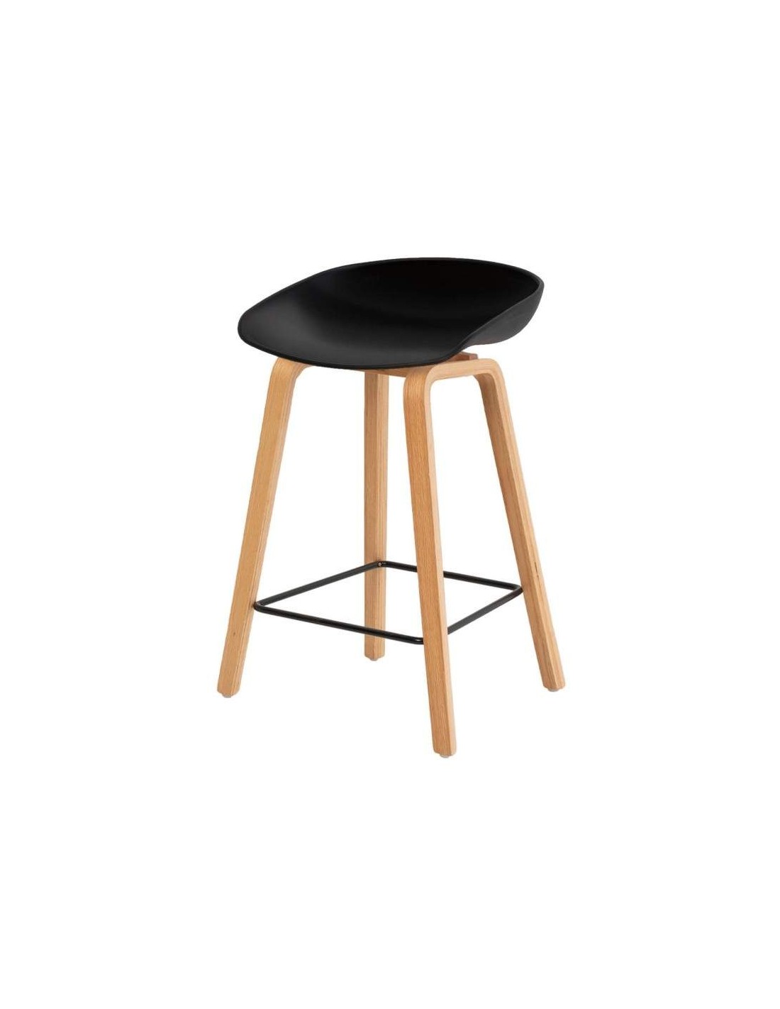 Tamborete de design nórdico. Assento em polipropileno de cor branco, cinza e preto. Estrutura em madeira. Um tamborete prático, utilitário e, sobretudo, muito confortável, excelente para a barra de sua cozinha.