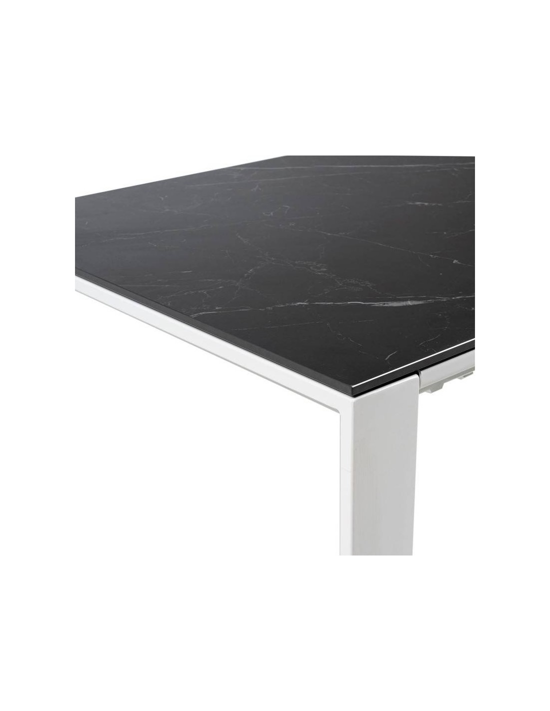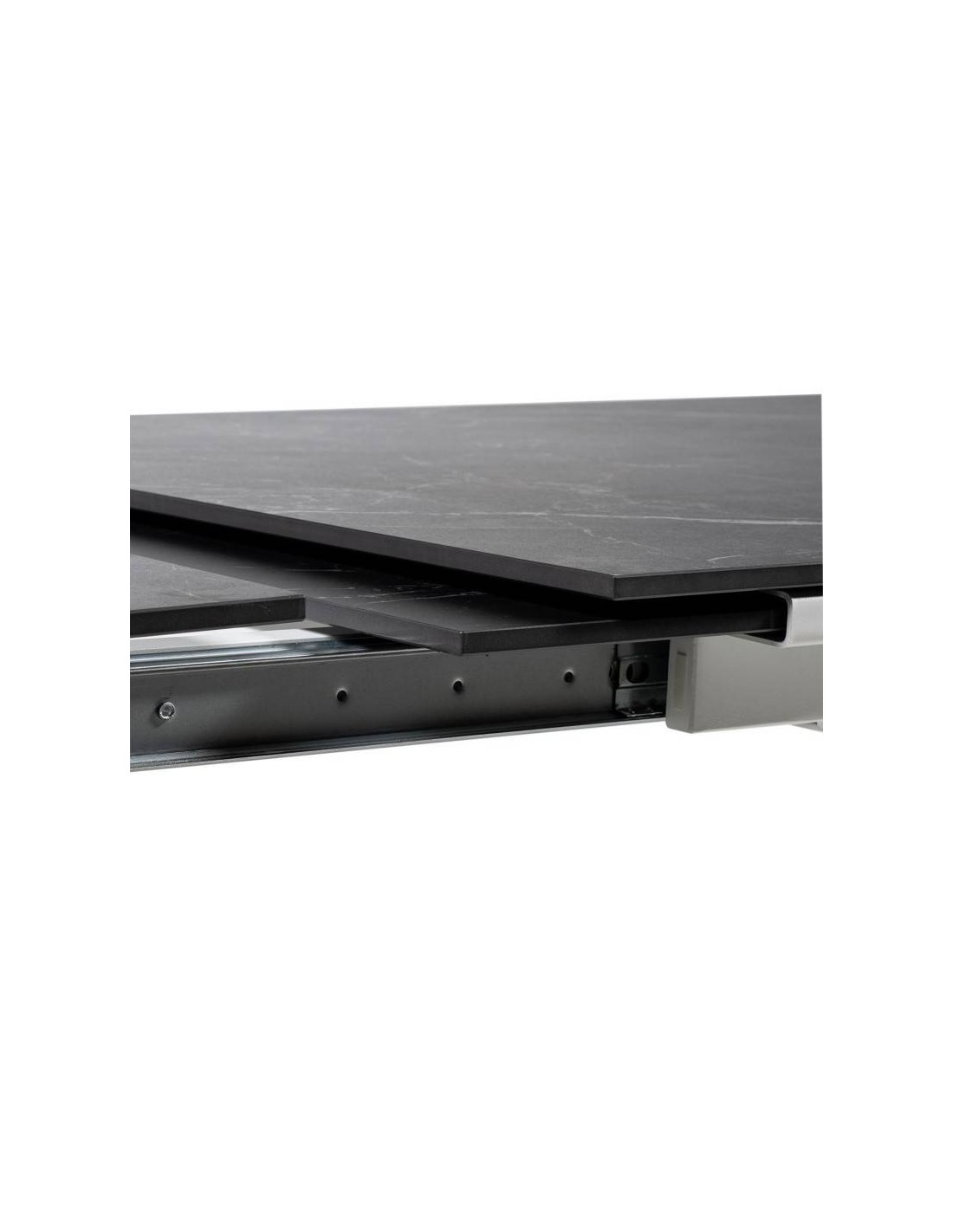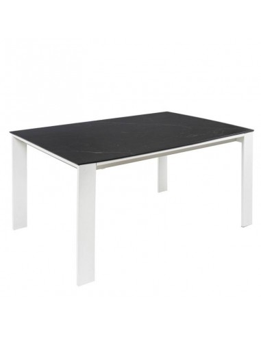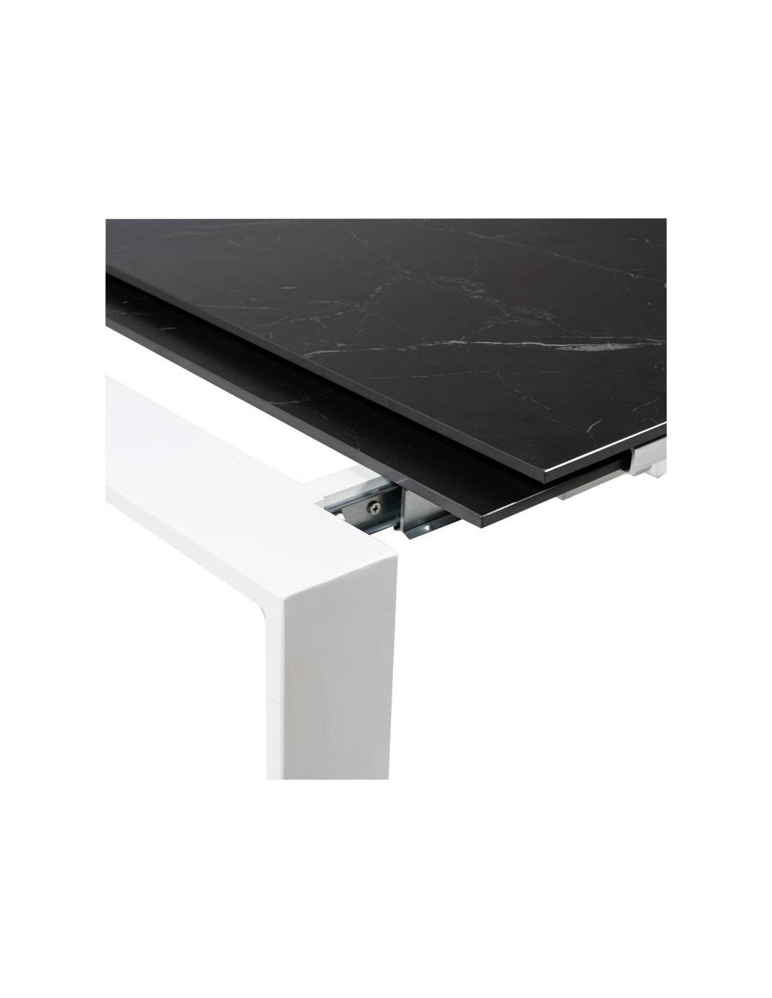 Mesa extensível JANET 140 (190-240) x 90. Porcelânico preto e base metálica branca.