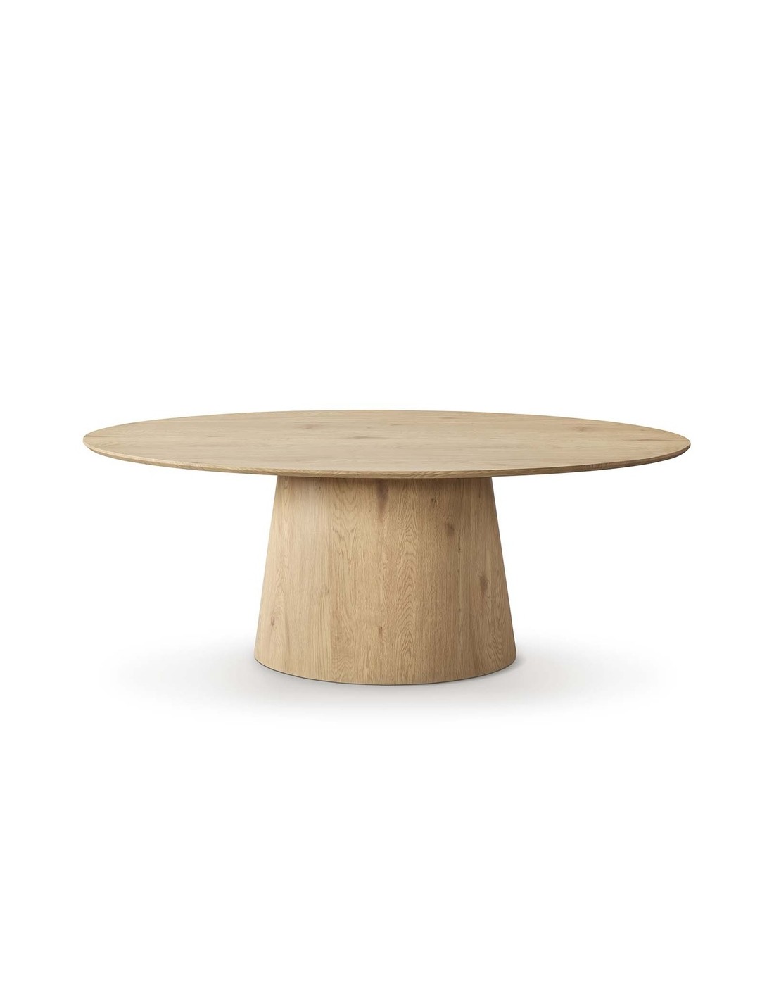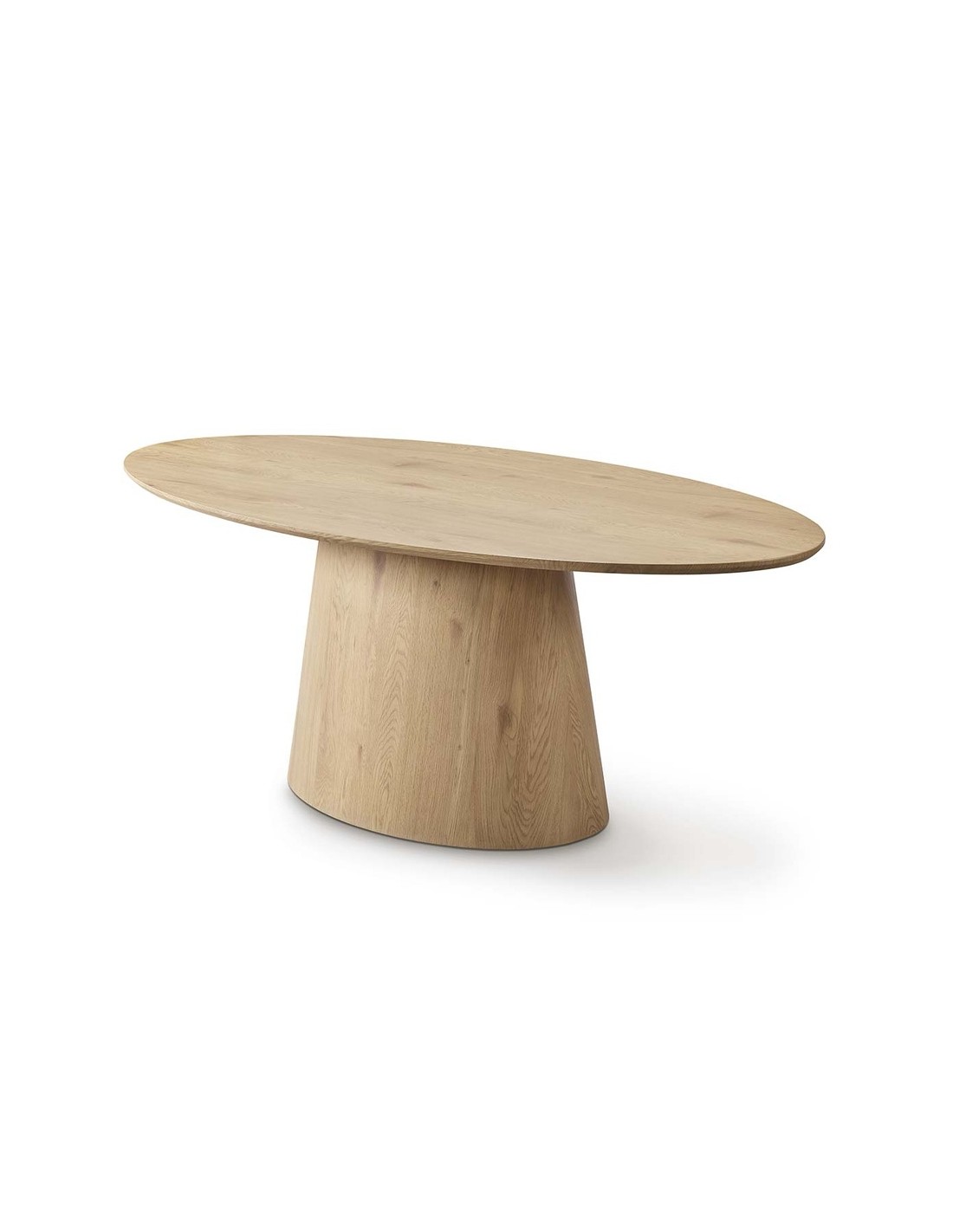 A mesa CALA é ideal para quem procura uma peça funcional com design sereno e moderno. Fabricado em DM (MDF) com folha decorativa de madeira natural, alia resistência, leveza e estética. A sua placa com 1 cm de espessura proporciona uma silhueta visualmente leve, enquanto a base cónica confere-lhe estabilidade e um design moderno muito atual.