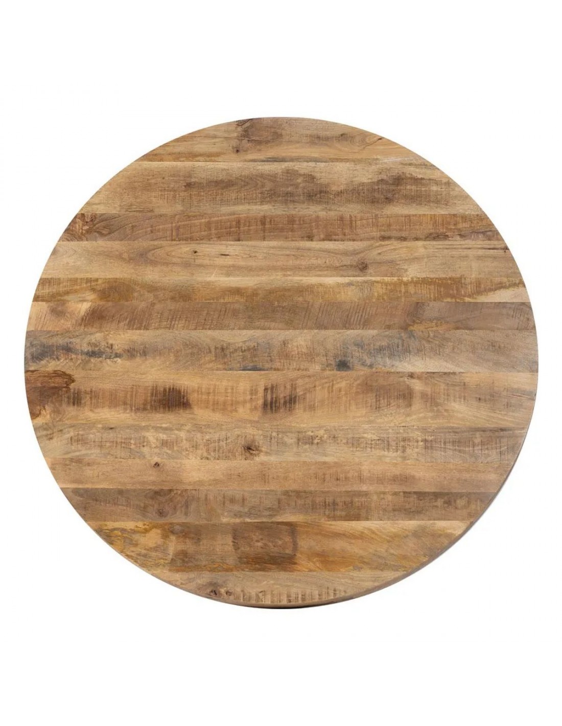 A mesa Argo é uma peça elegante, durável e altamente funcional, perfeita para quem procura uma mesa redonda compacta com design contemporâneo e materiais duráveis. Seu tampo é feito em madeira de manga natural de 6 cm de espessura, com acabamento em tom natural de madeira que proporciona aconchego e sofisticação. A base, feita de pernas de metal preto em formato de estrela, garante uma estrutura resistente e acrescenta um toque contemporâneo e industrial. Graças ao seu design redondo, a mesa Argo promove uma disposição fluida e um ambiente acolhedor, ideal para 4 a 6 pessoas.