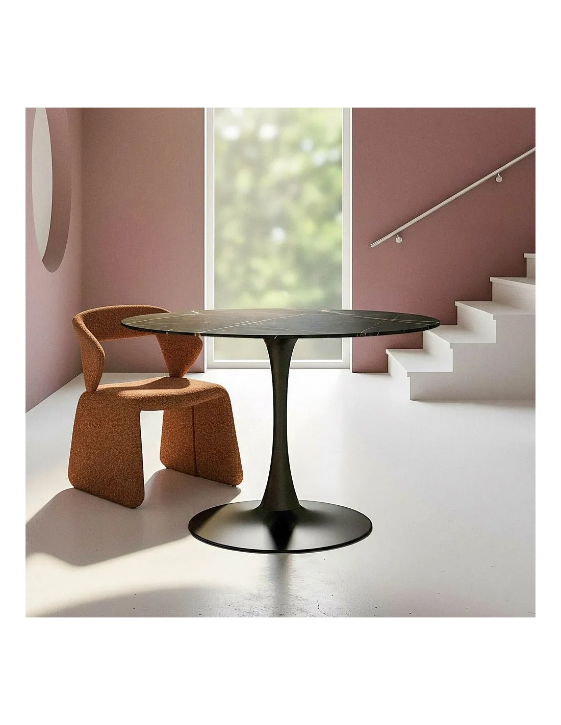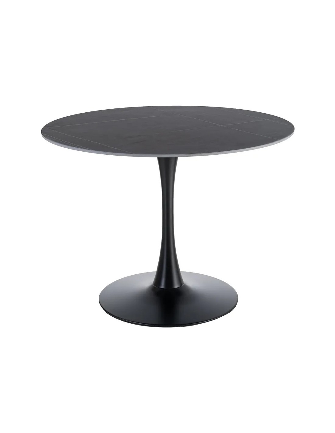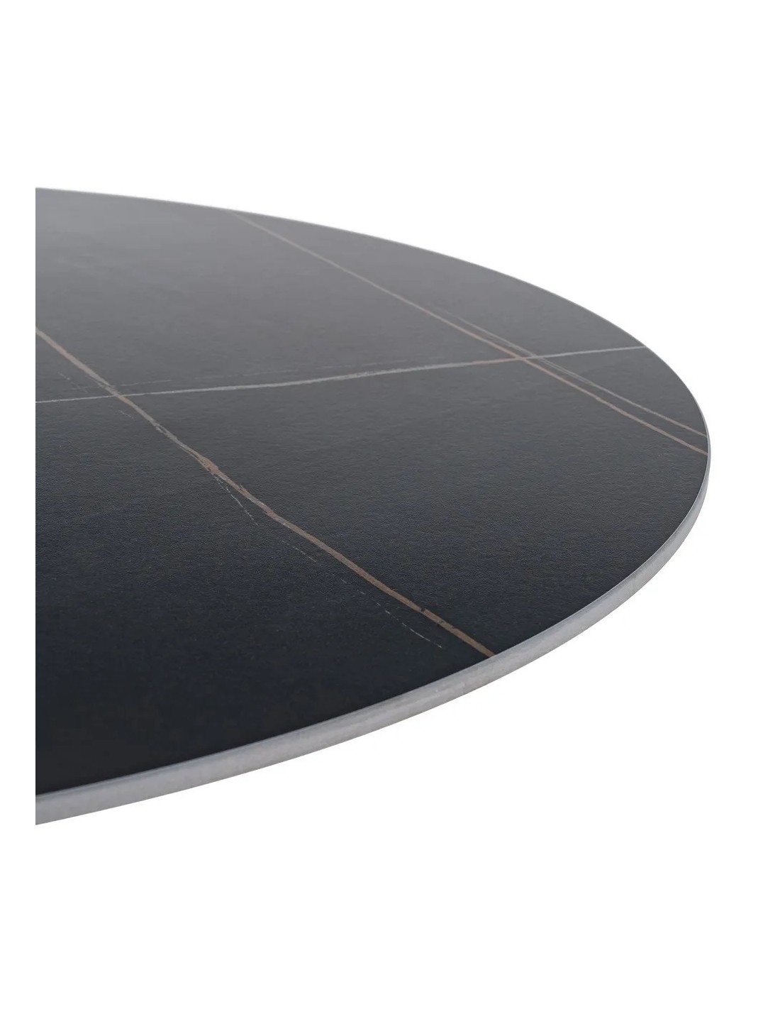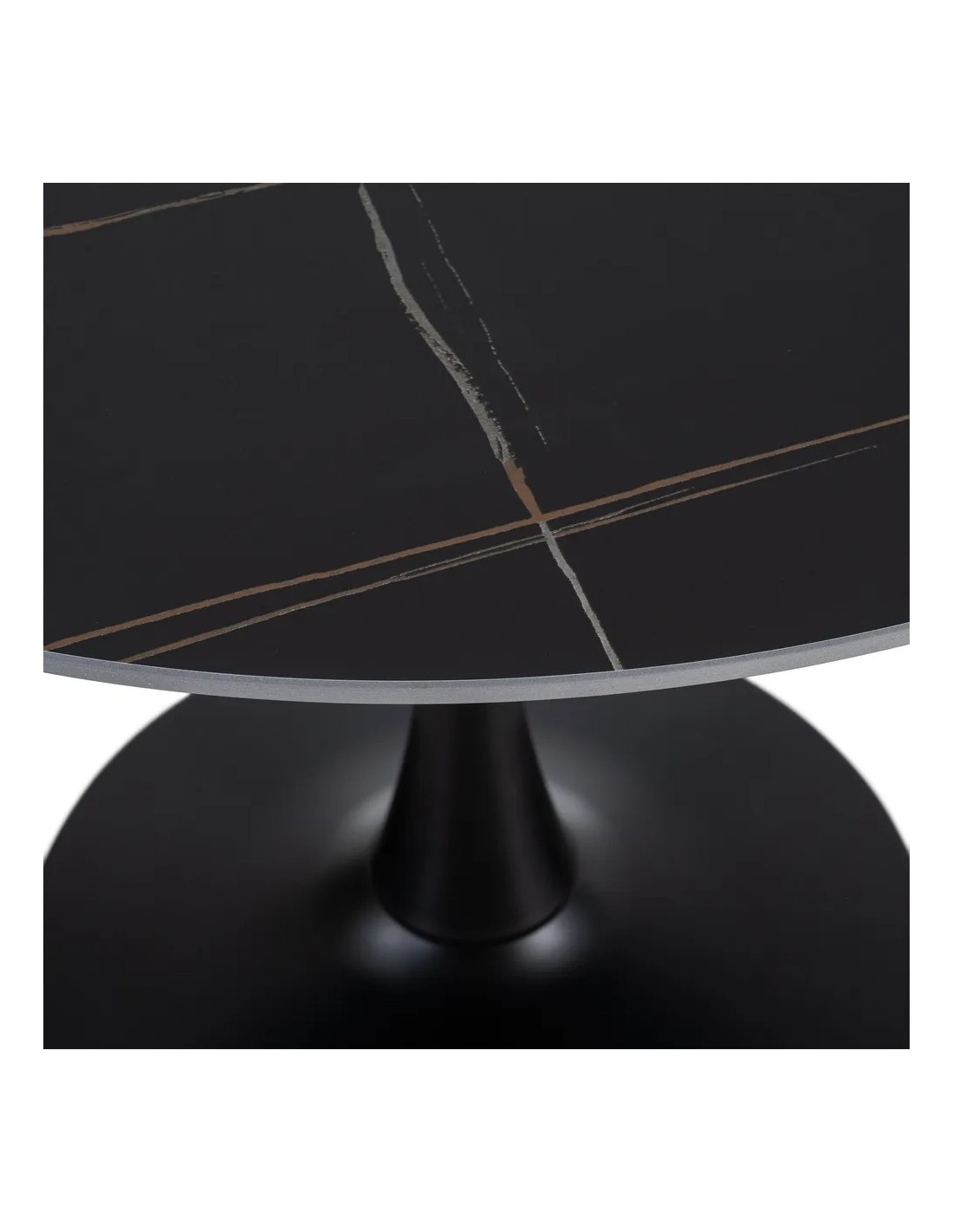 A Mesa redonda Oda 100 cm em pedra sinterizada com base de metal lacado a preto é perfeita para quem valoriza estética contemporânea e resistência no dia a dia. Ideal para salas de jantar modernas, pequenos apartamentos ou ambientes de inspiração minimalista.