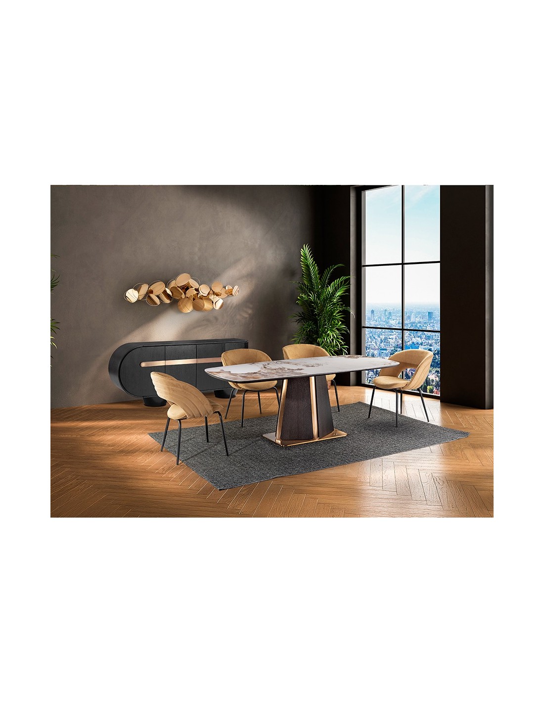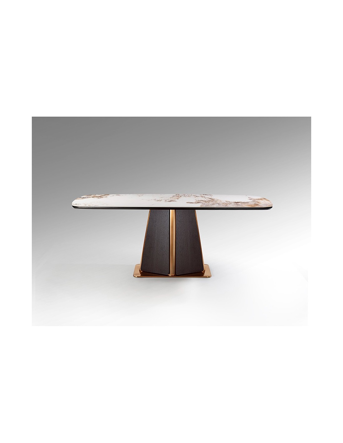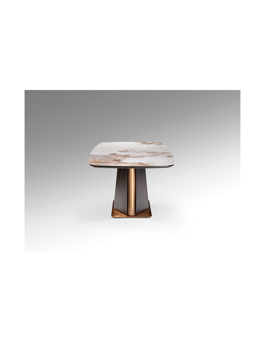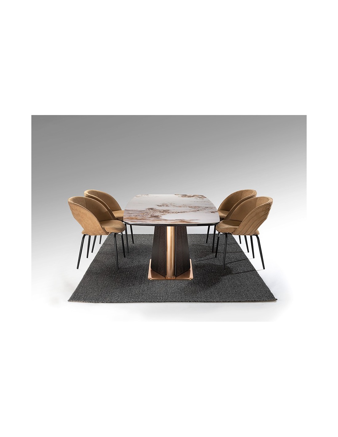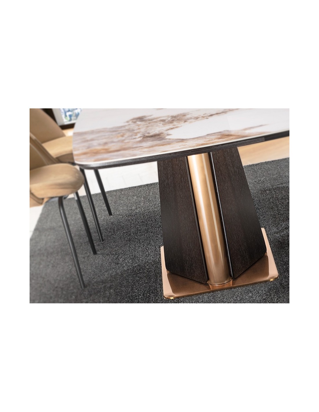 Mesa de jantar LUCA em carvalho escuro e aço dourado rosa