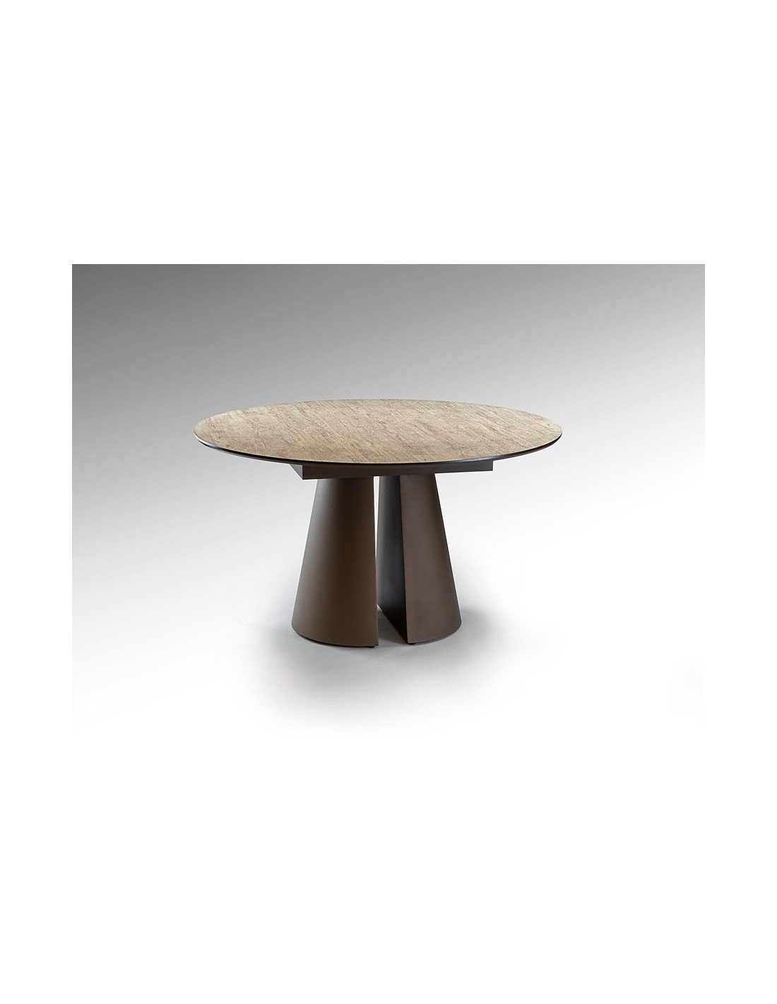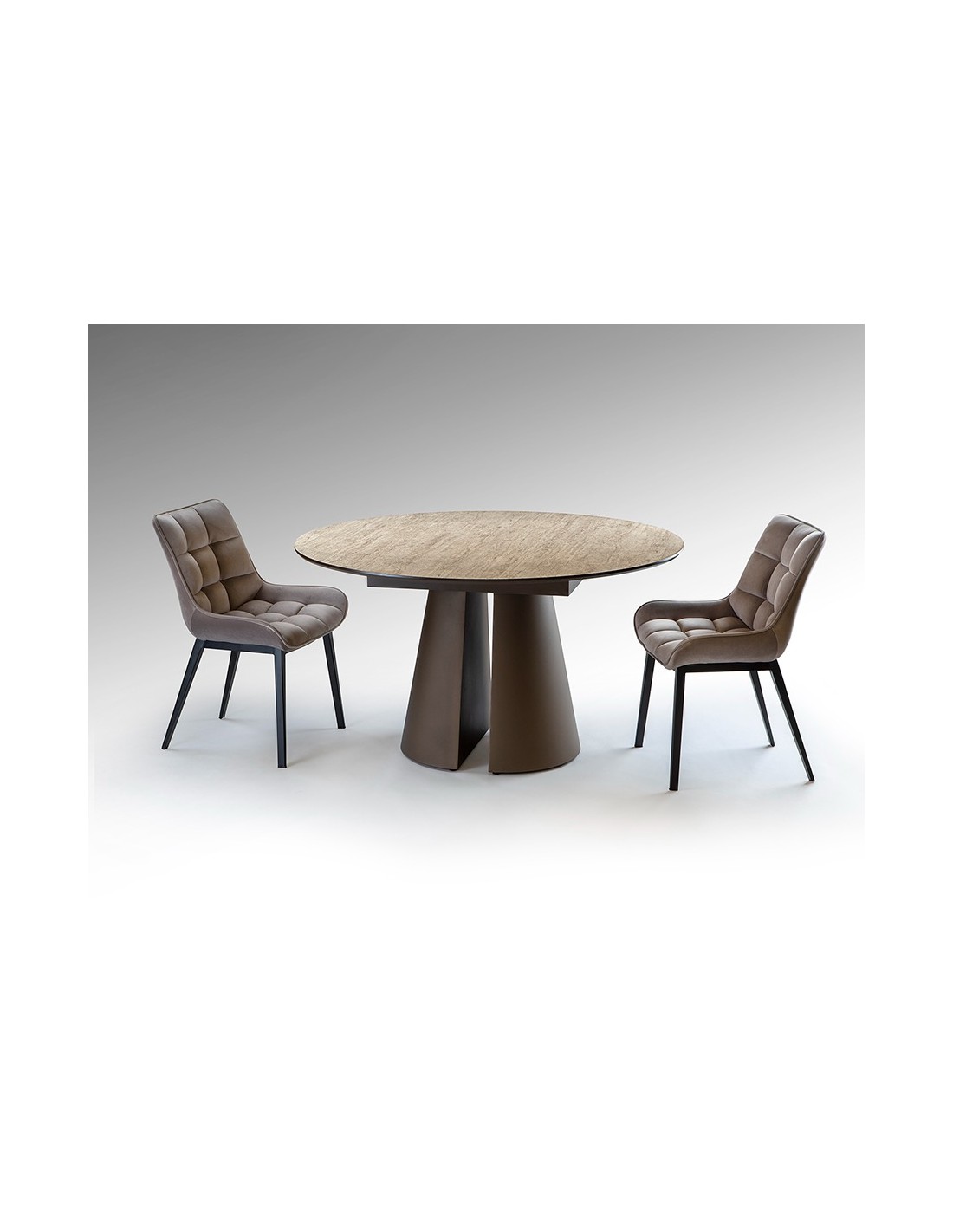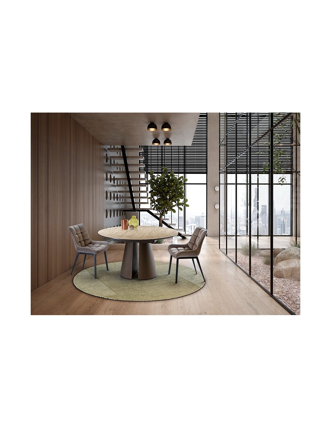 A mesa de jantar redonda SAMARA de 138 cm é a escolha ideal para quem procura unir estilo contemporâneo, materiais duráveis e funcionalidade. Com acabamento travertino mate e detalhes em castanho óxido, destaca-se como uma peça central elegante e resistente para o uso diário.