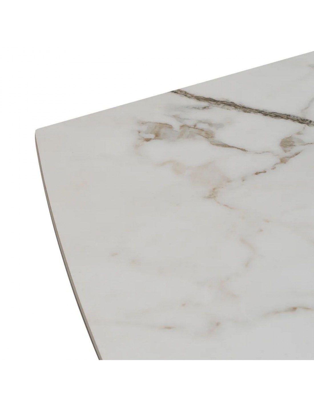 - Tampo em cerâmica marmoreada bege (0,6 cm): aparência de mármore natural, resistente a riscos, manchas e calor.