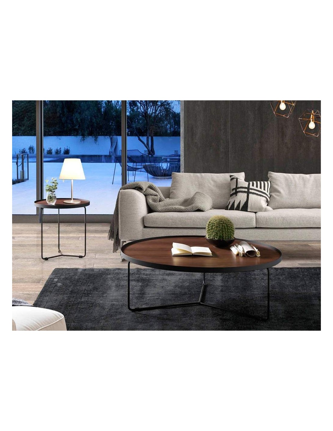 Mesa de café redonda Venus 100, Nogueira e aço preto